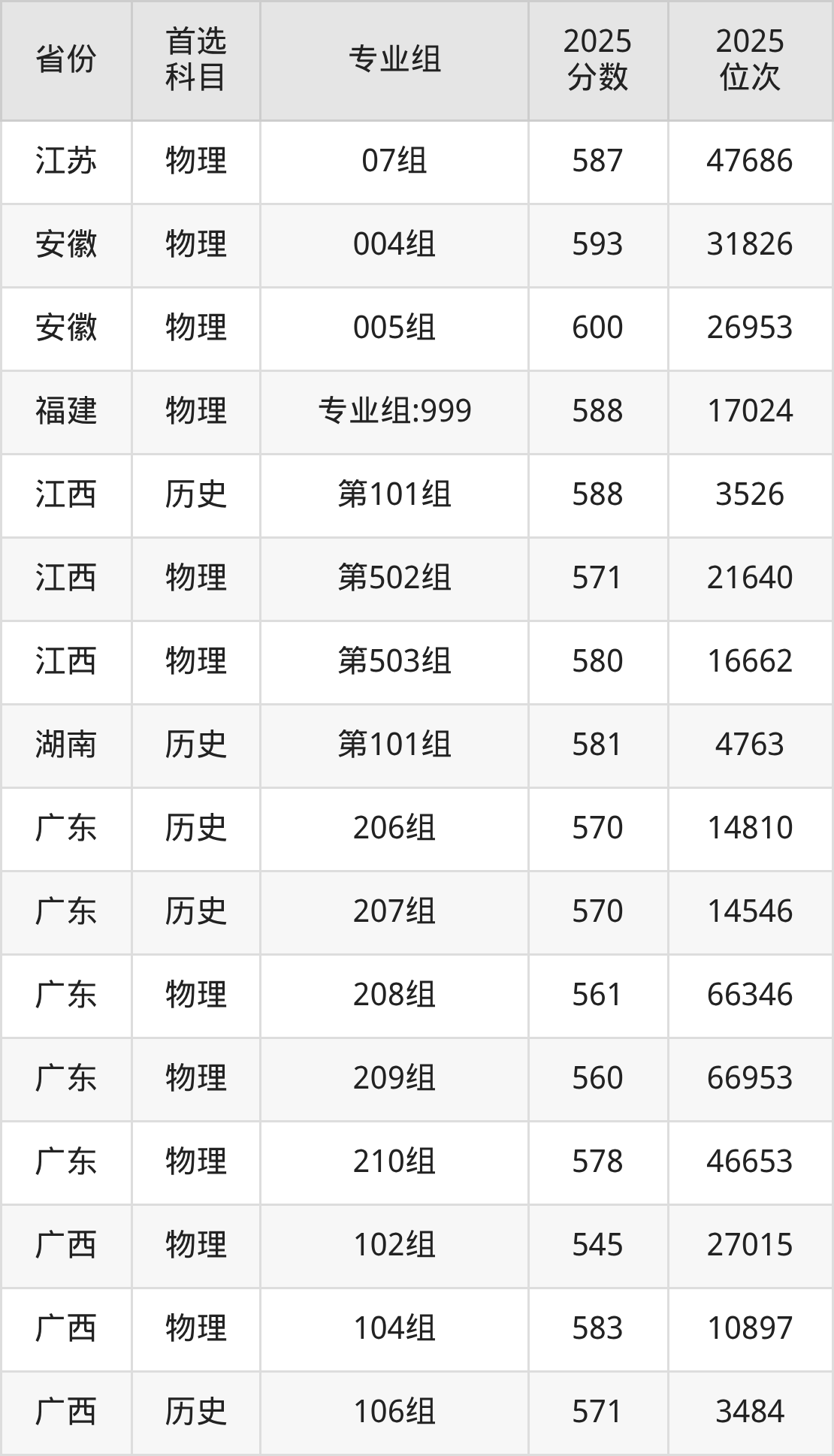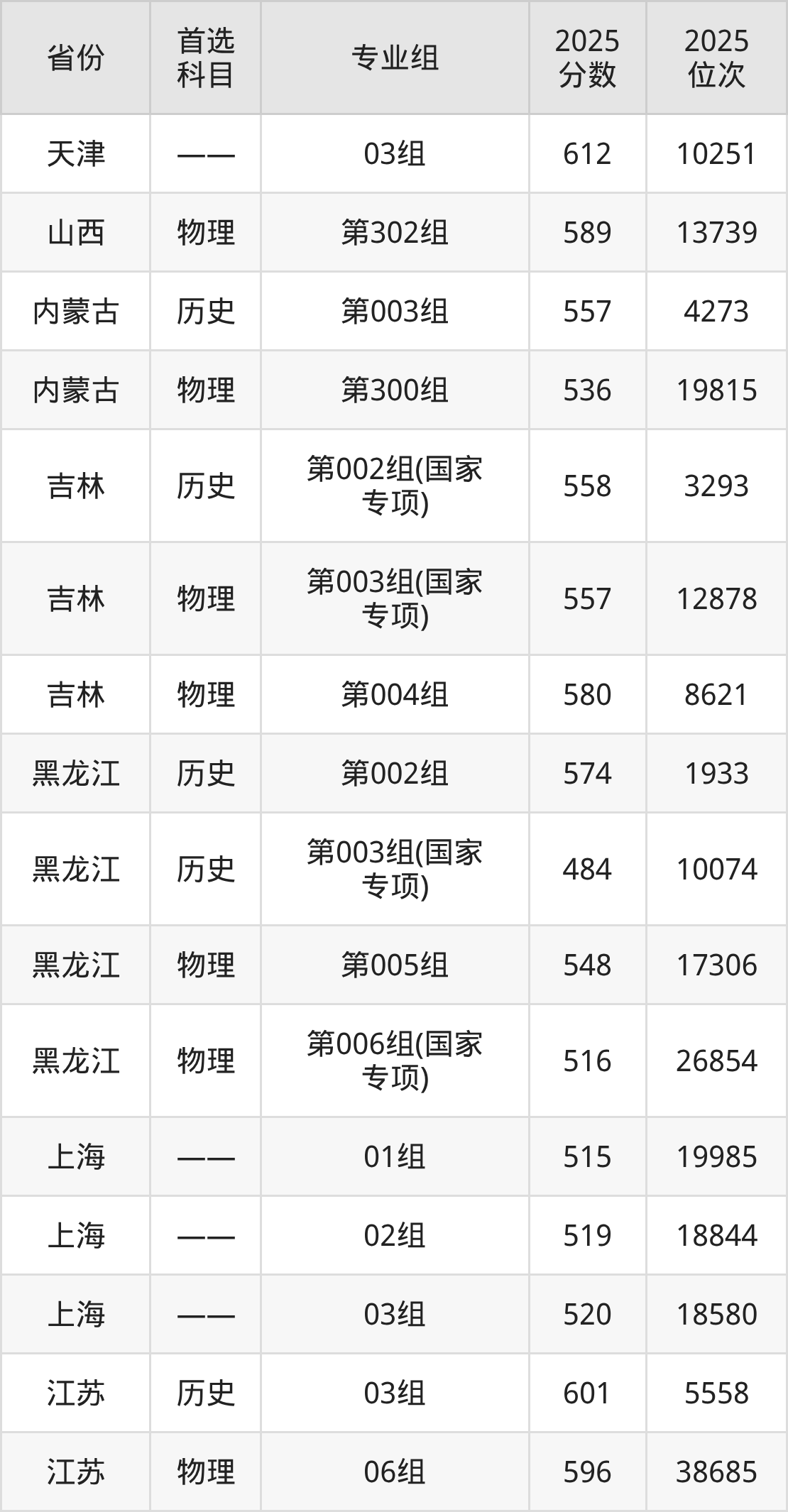 因为大部分地区目前只公布了院校(专业组)分数线,为了方便2026年考生参考,本文就整理出上海海关学院在全国各省不同科类的最低分: