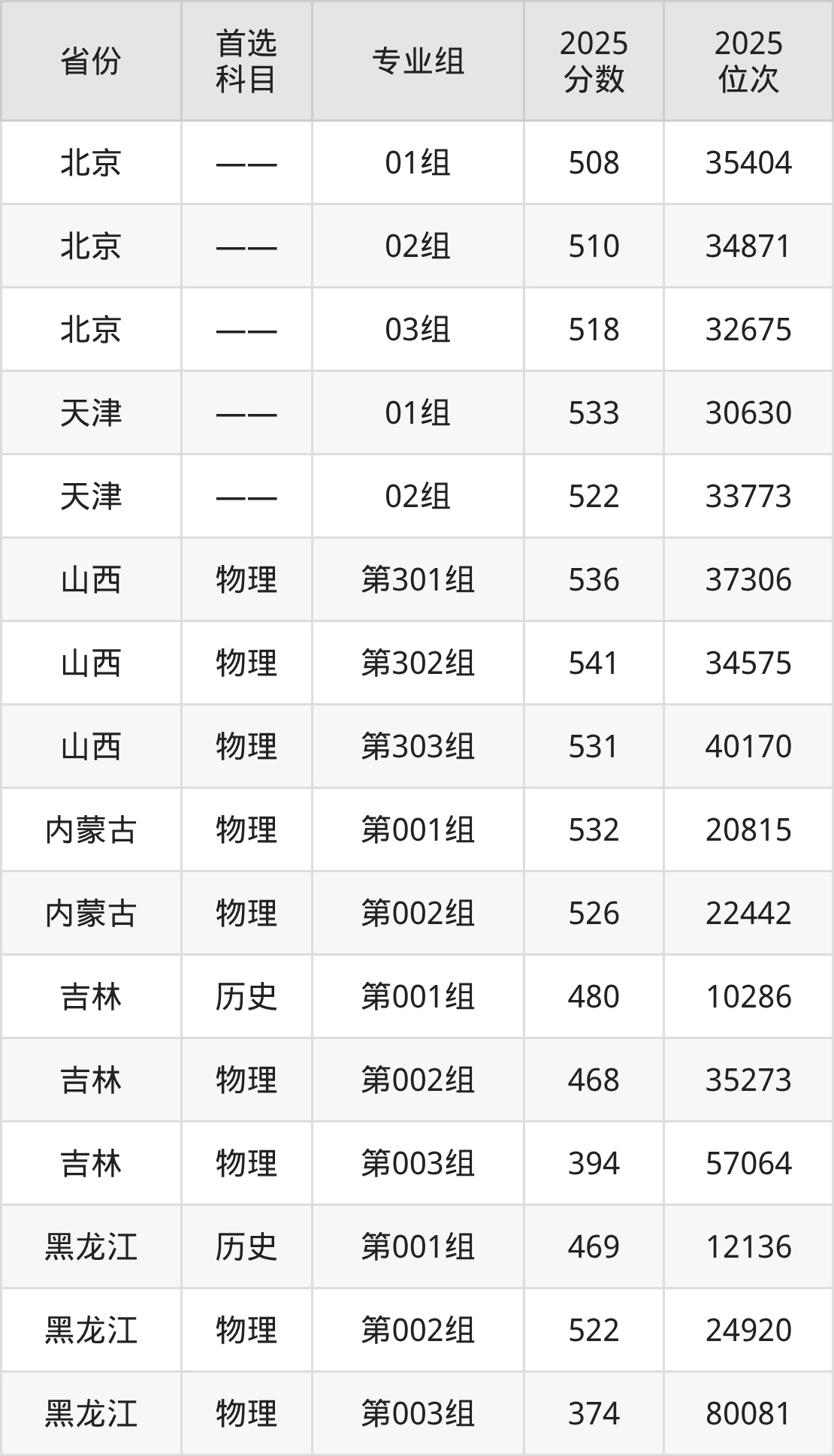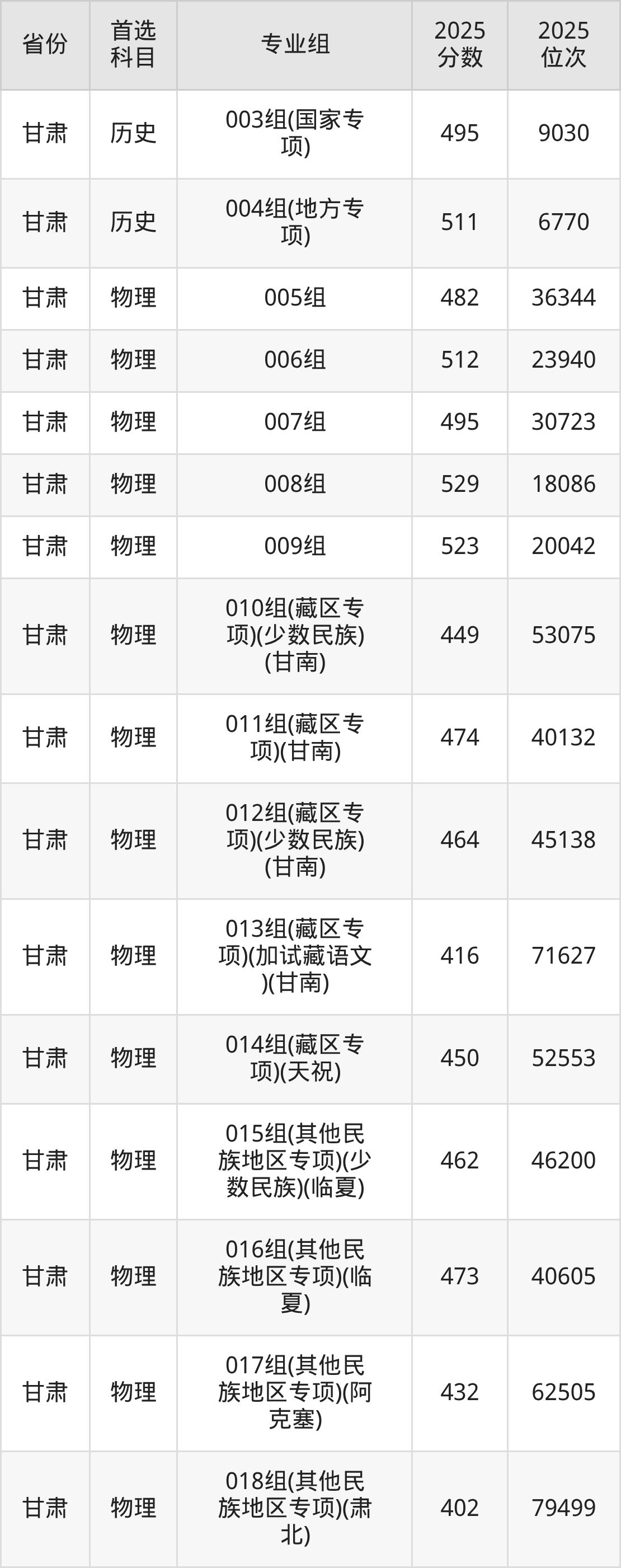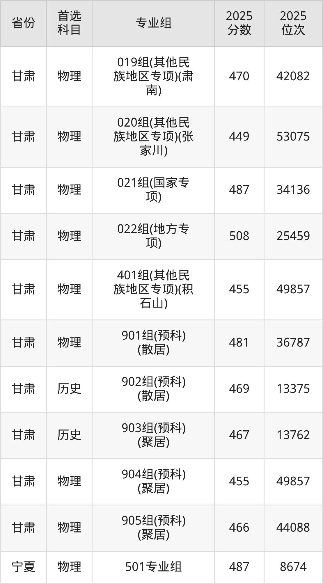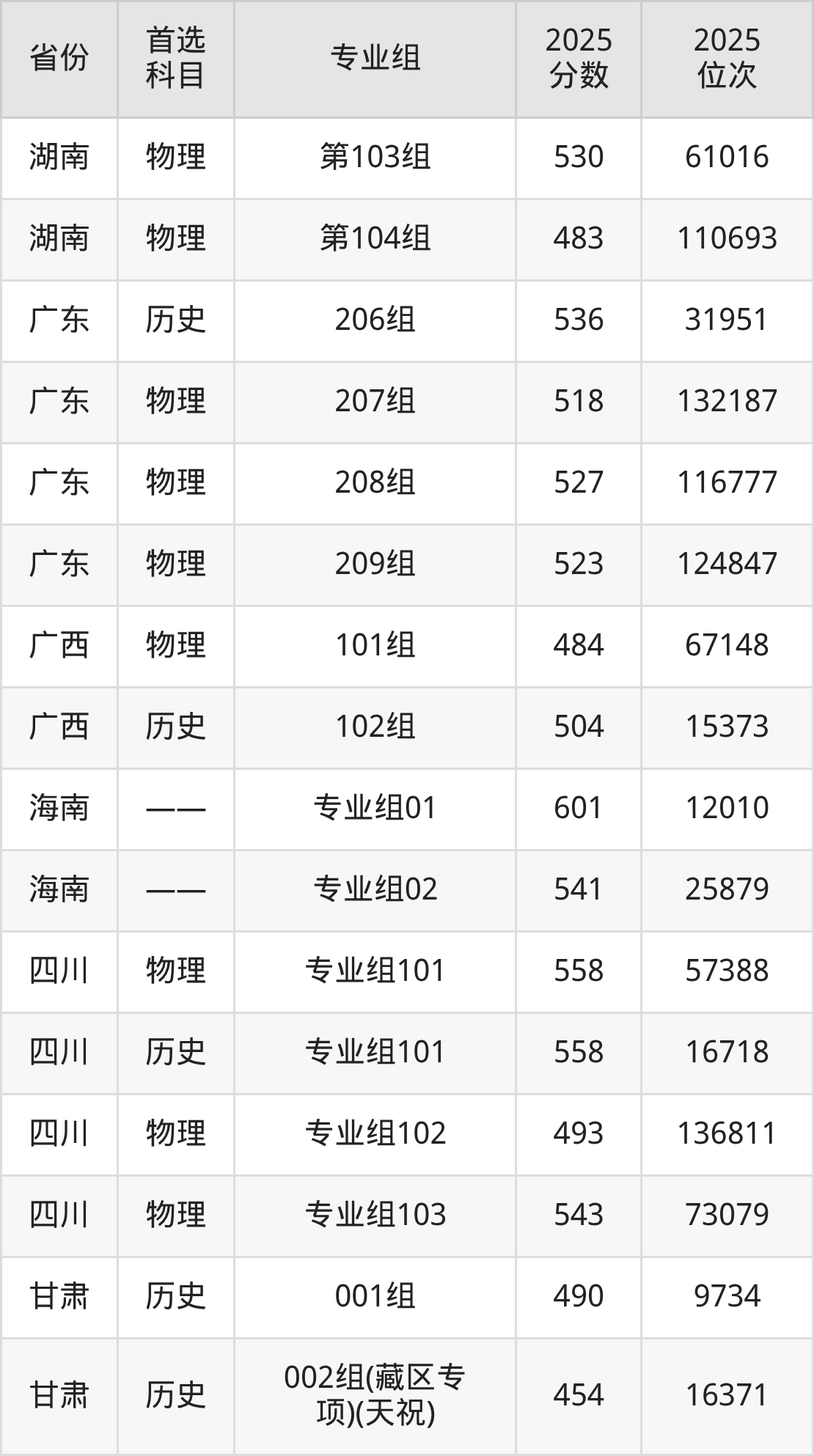 因为大部分地区目前只公布了院校(专业组)分数线,为了方便2026年考生参考,本文就整理出兰州理工大学在全国各省不同科类的最低分: