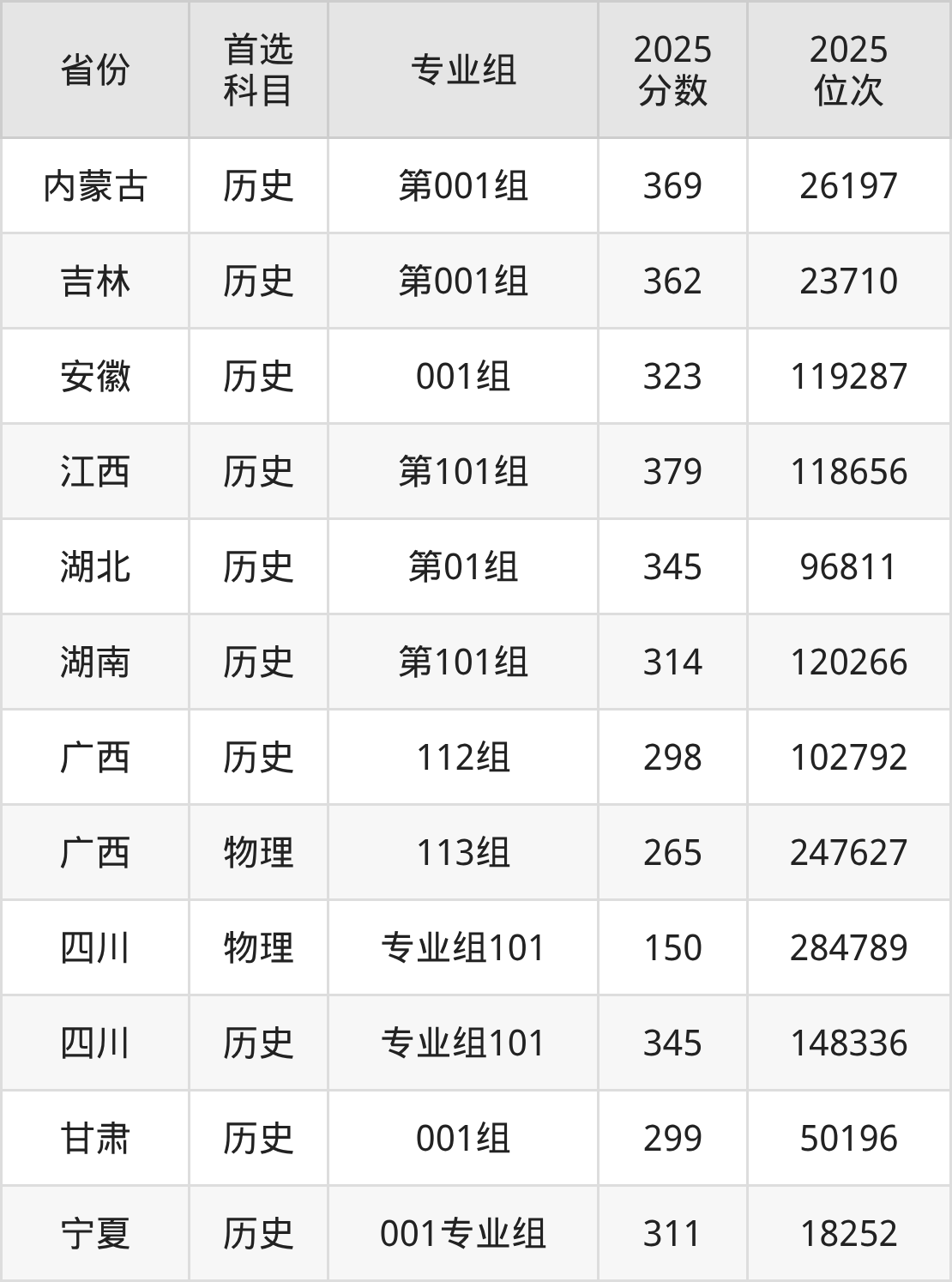 13.甘肃:历史类299分、50196位