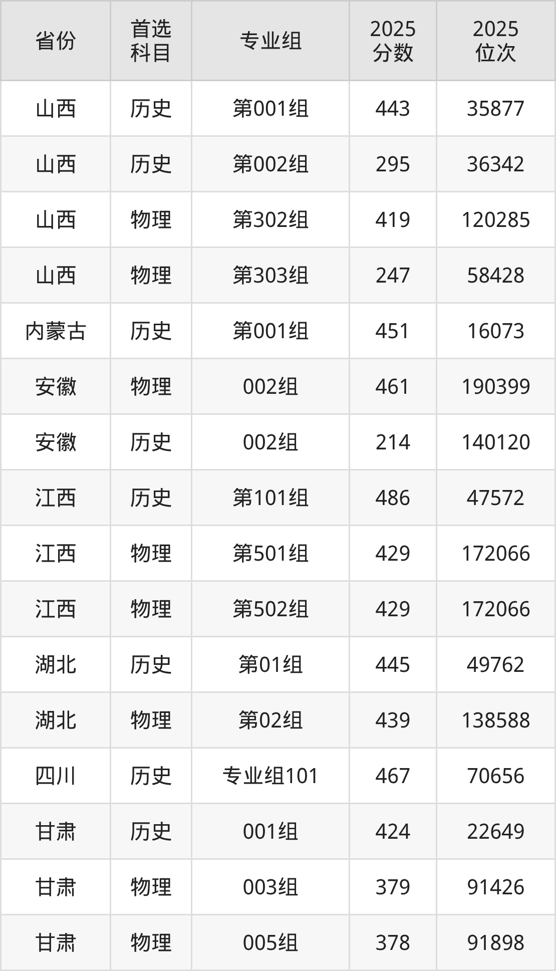因为大部分地区目前只公布了院校(专业组)分数线,为了方便2026年考生参考,本文就整理出陕西服装工程学院在全国各省不同科类的最低分: