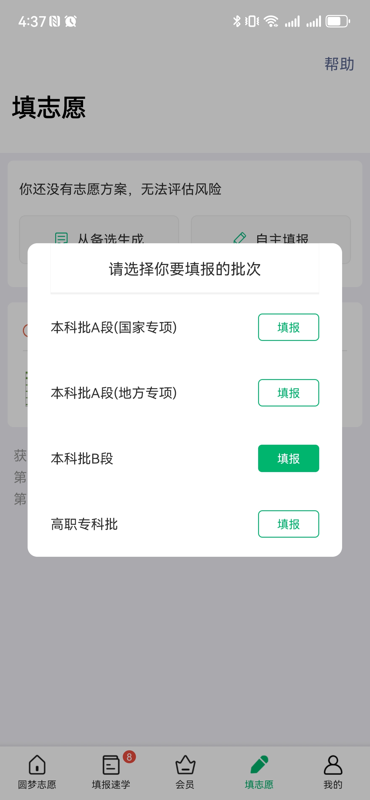 2、考生根据自己的分数选择自己所要填报的“本科批”或“专科批”进行填报。(APP里面包含了国内3千多所本专科院校,数据都是根据学校或者官网公布更新,学生可放心填报)