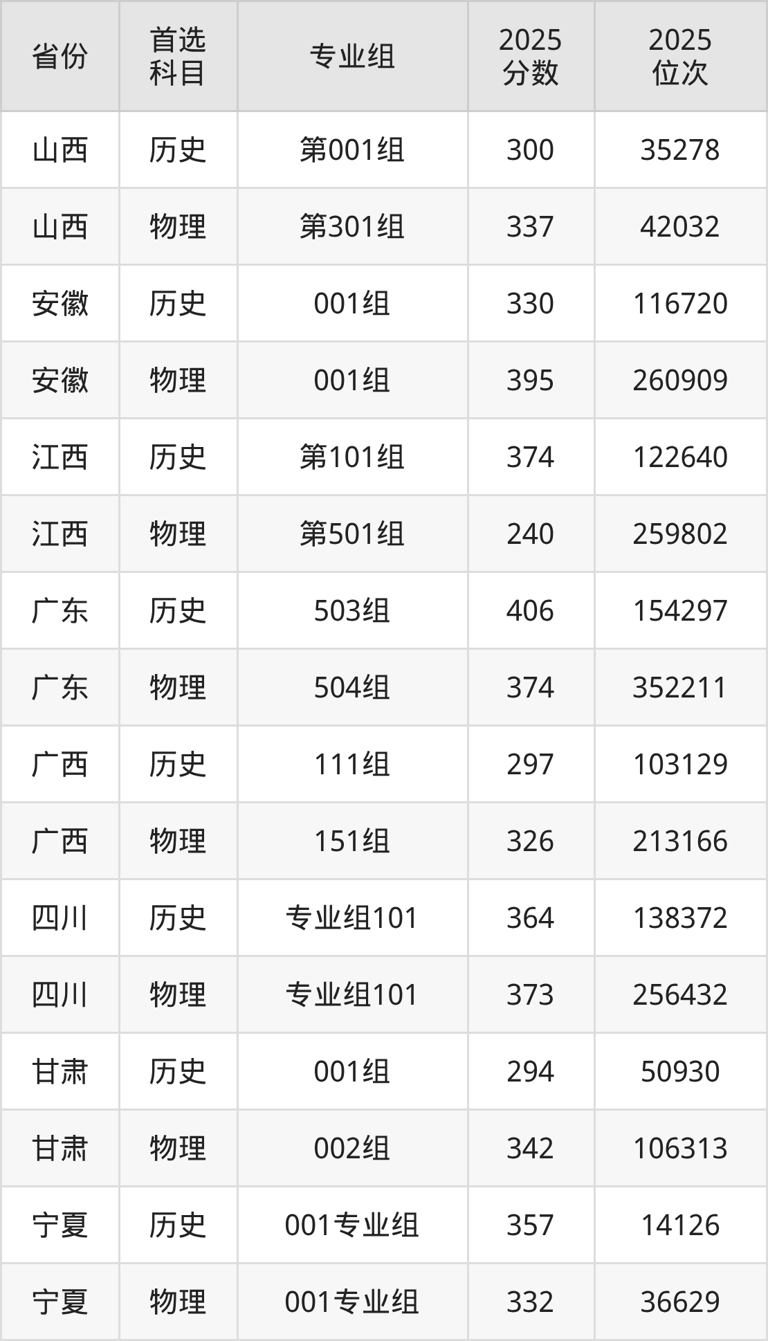 因为大部分地区目前只公布了院校(专业组)分数线,为了方便2026年考生参考,本文就整理出江西冶金职业技术学院在全国各省不同科类的最低分: