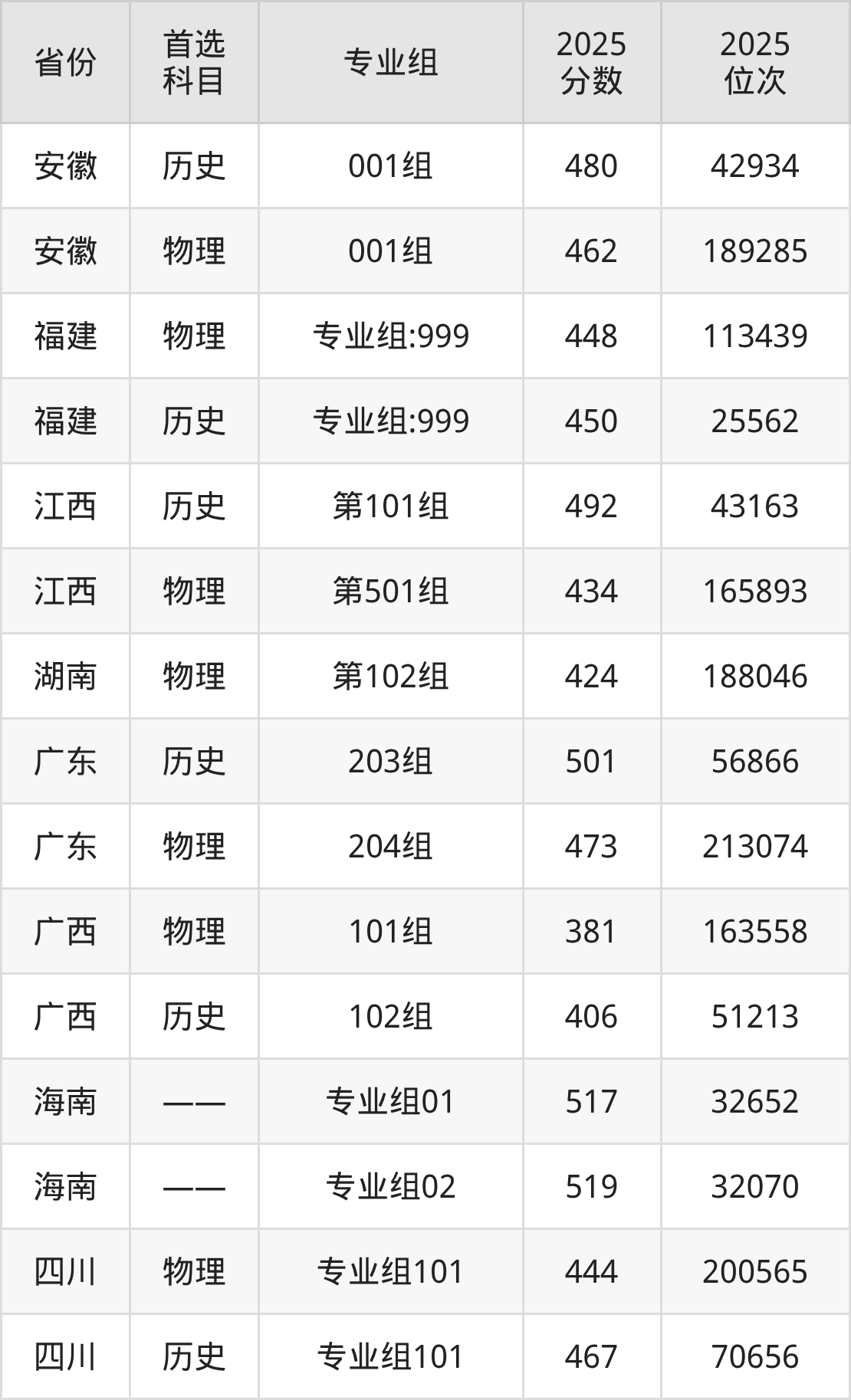 因为大部分地区目前只公布了院校(专业组)分数线,为了方便2026年考生参考,本文就整理出泉州职业技术大学在全国各省不同科类的最低分: