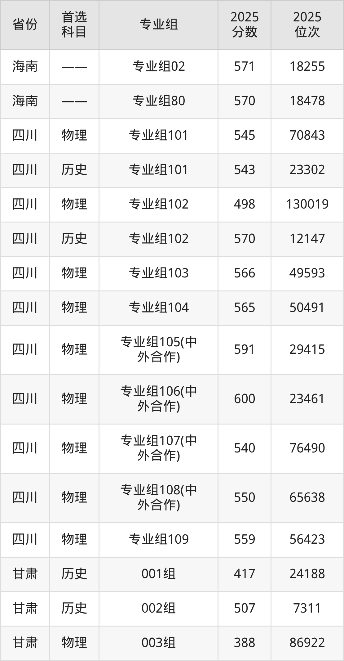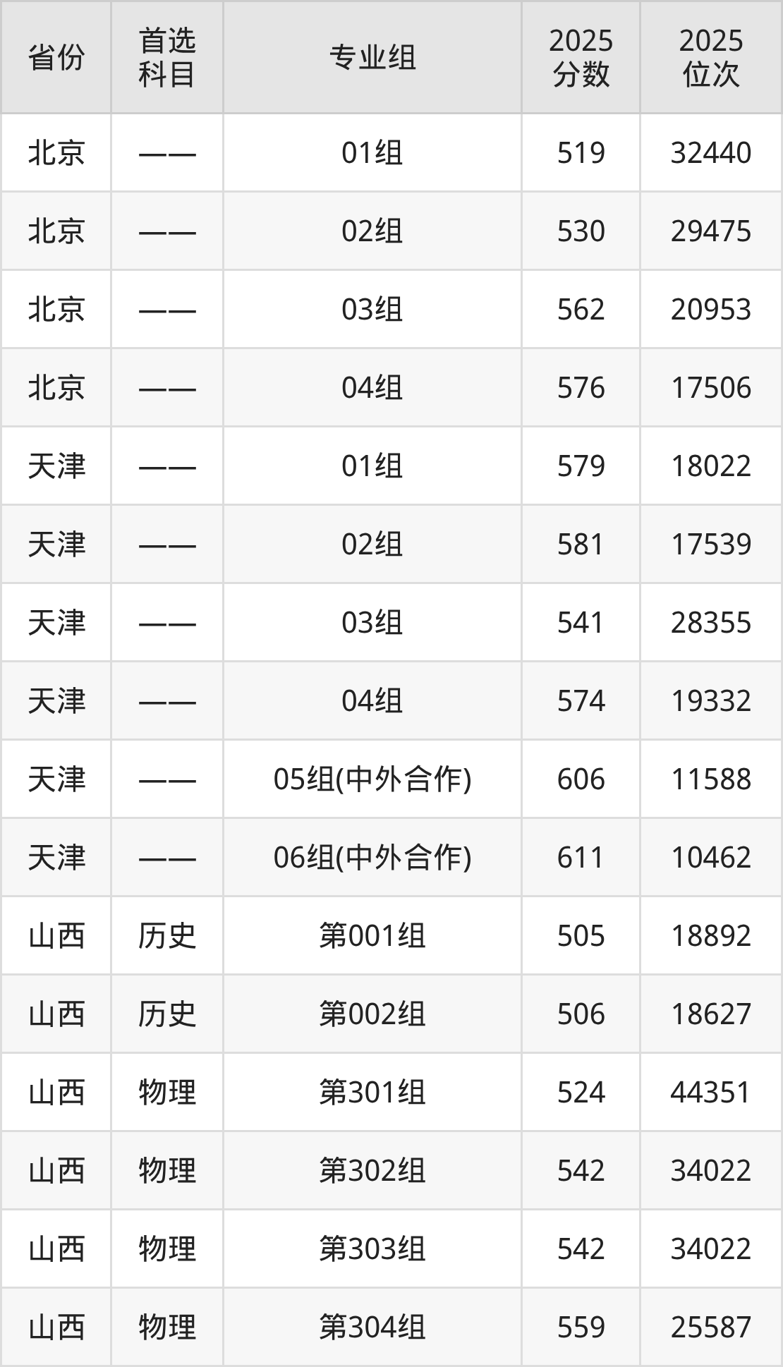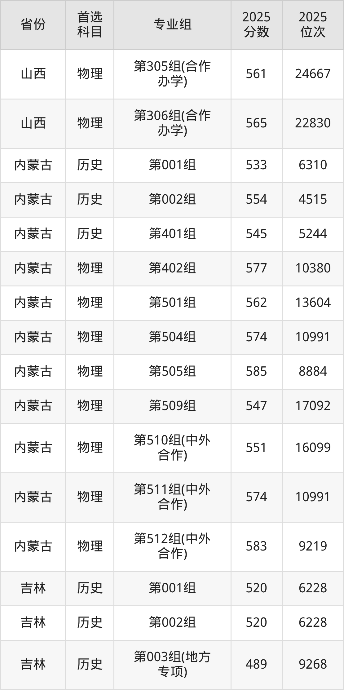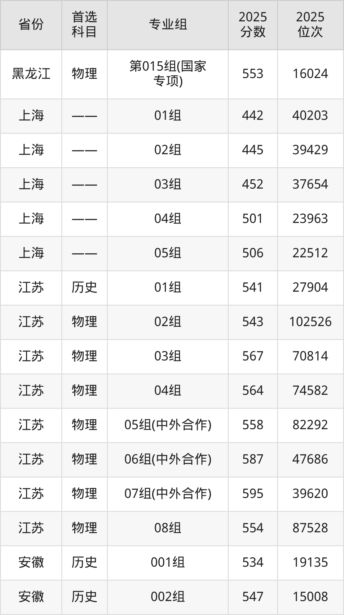 因为大部分地区目前只公布了院校(专业组)分数线,为了方便2026年考生参考,本文就整理出长春理工大学在全国各省不同科类的最低分: