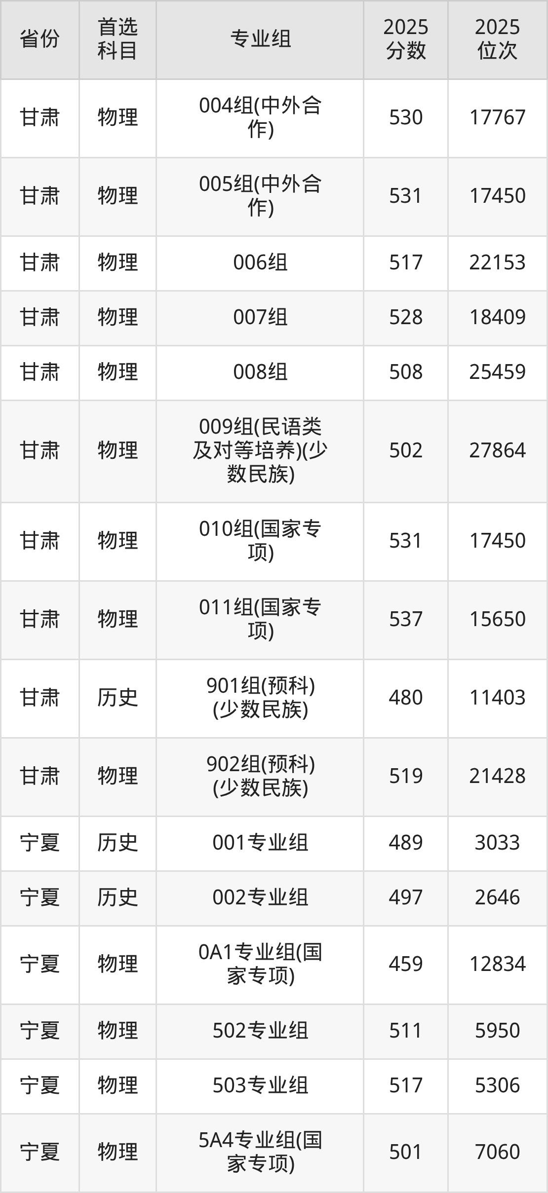 25.宁夏:历史类489分、3033位,物理类459分、12834位