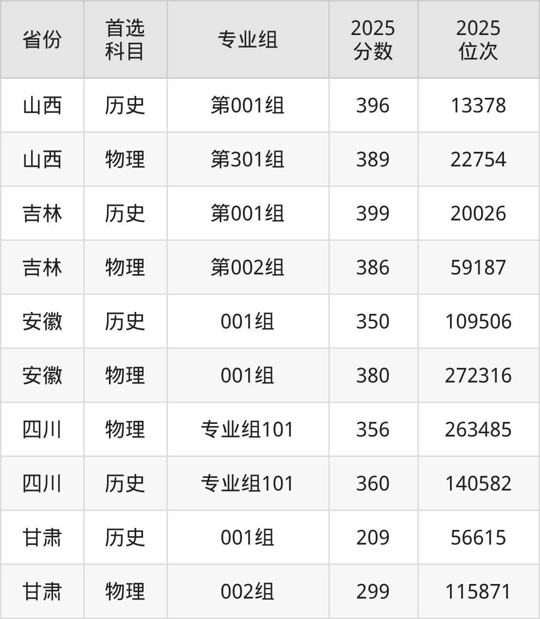 因为大部分地区目前只公布了院校(专业组)分数线,为了方便2026年考生参考,本文就整理出山东理工职业学院在全国各省不同科类的最低分: