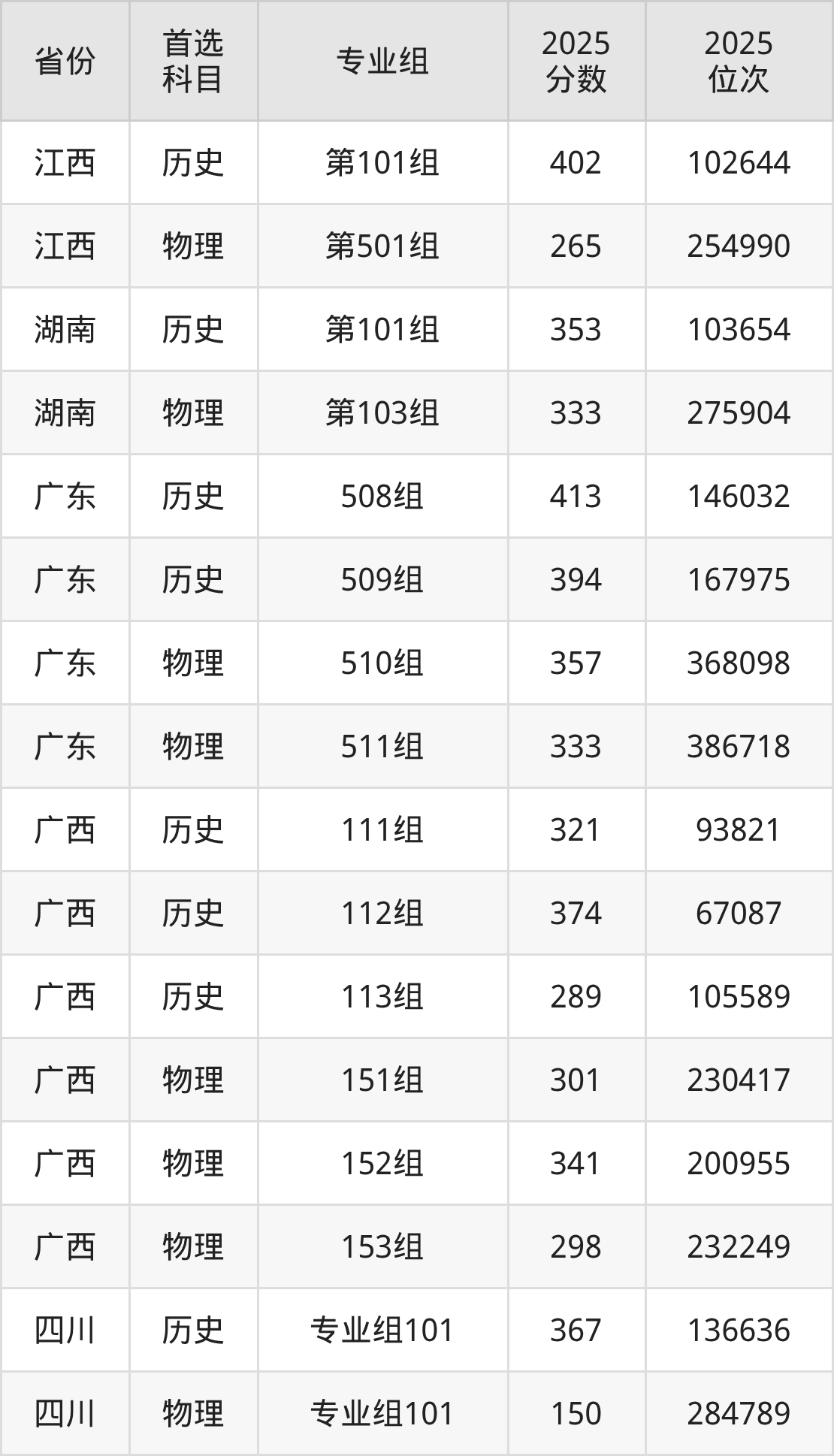 因为大部分地区目前只公布了院校(专业组)分数线,为了方便2026年考生参考,本文就整理出崇左幼儿师范高等专科学校在全国各省不同科类的最低分: