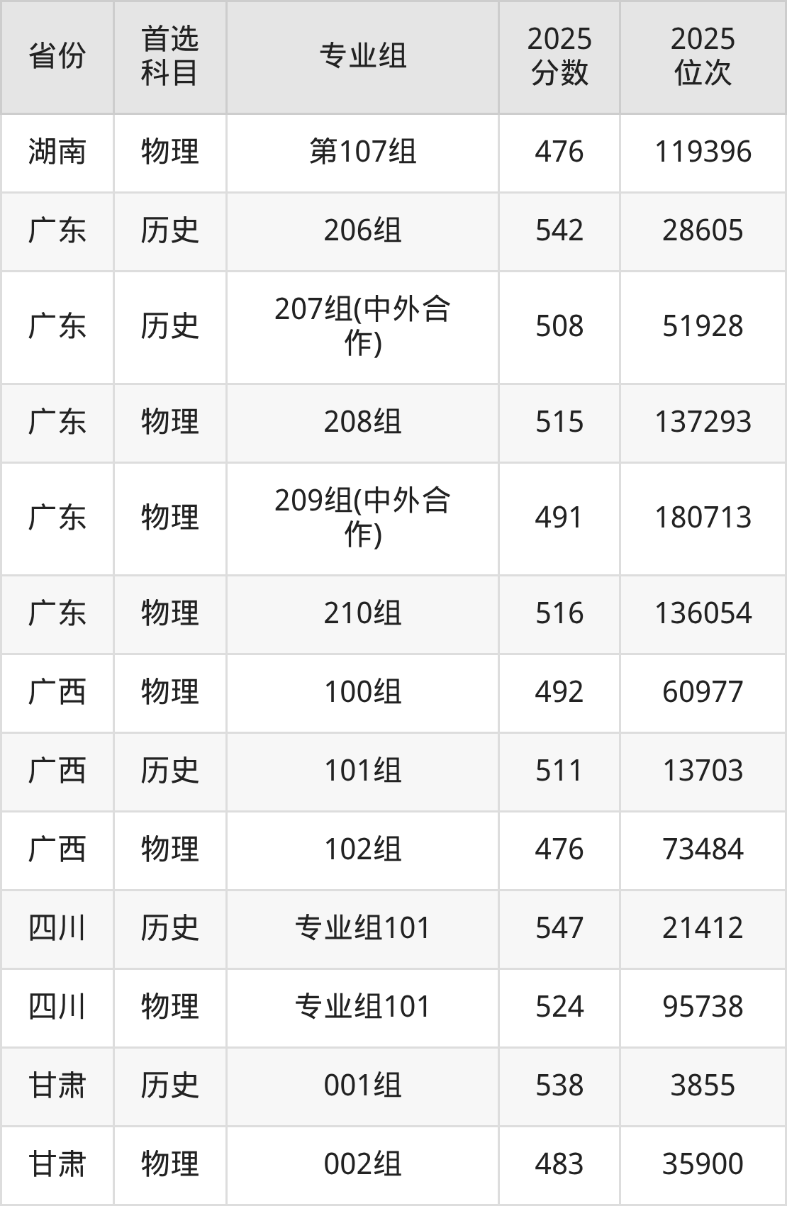 18.食品科学与工程(中外合作办学):490分、184372位