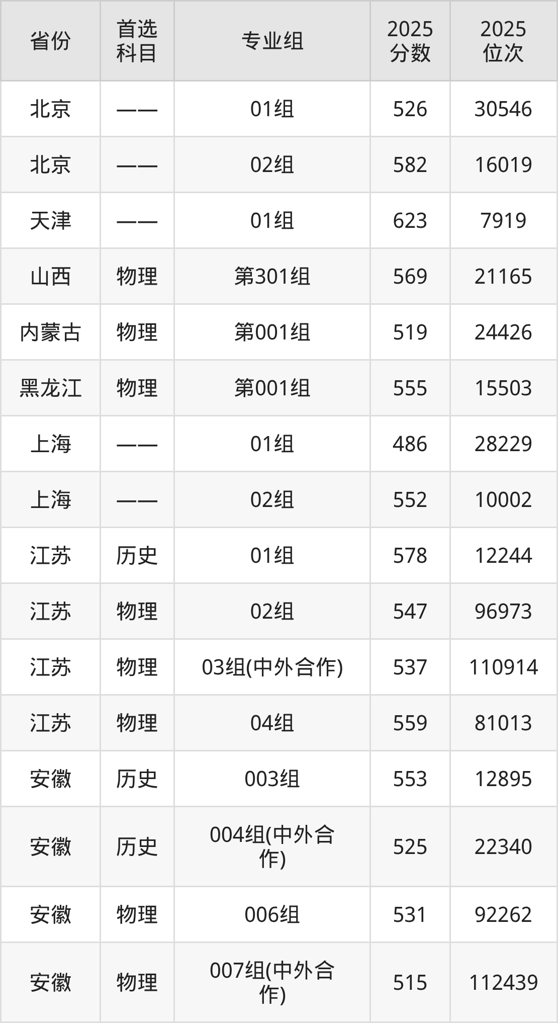 因为大部分地区目前只公布了院校(专业组)分数线,为了方便2026年考生参考,本文就整理出安徽医科大学在全国各省不同科类的最低分: