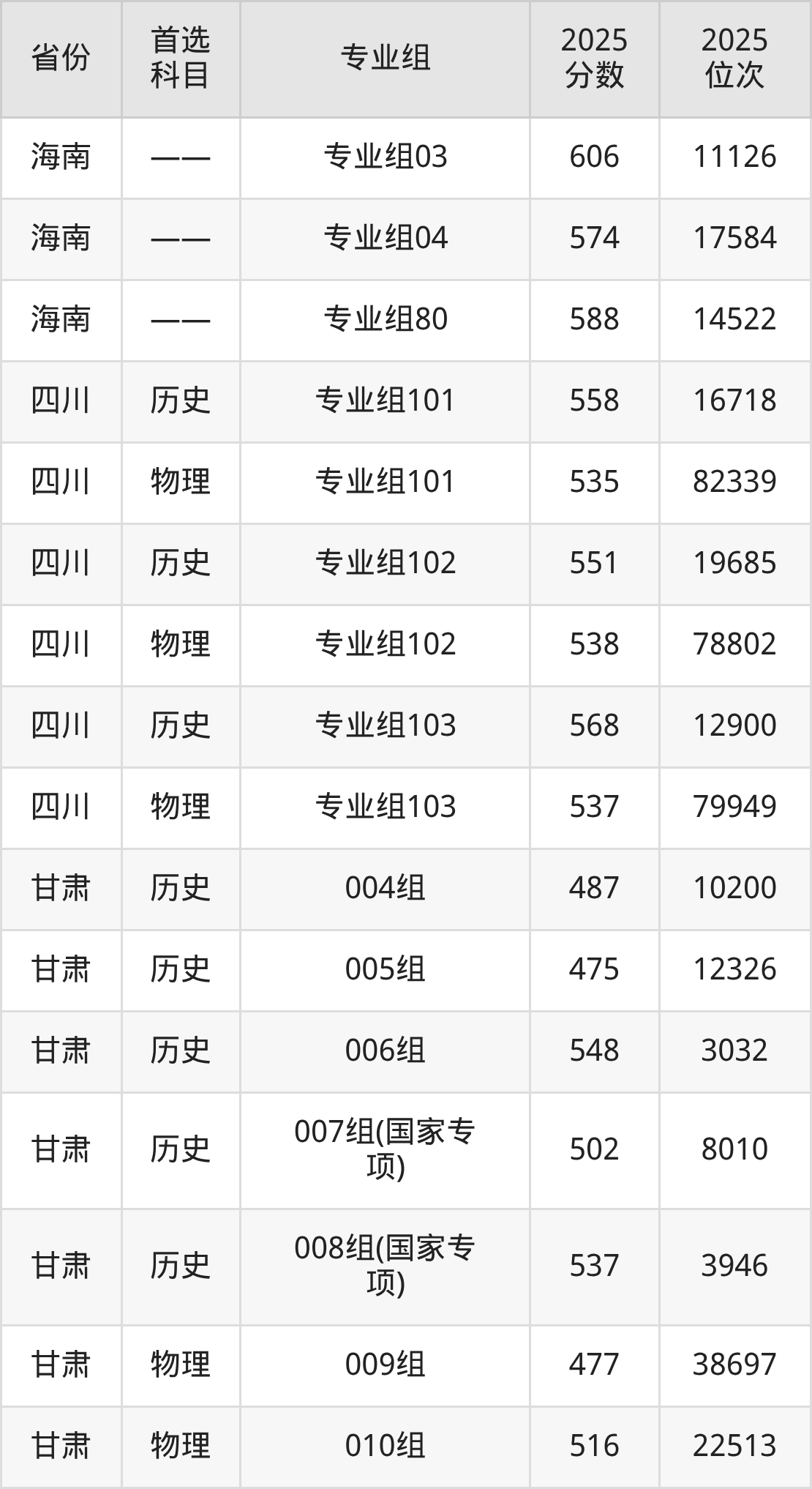 因为大部分地区目前只公布了院校(专业组)分数线,为了方便2026年考生参考,本文就整理出山东师范大学在全国各省不同科类的最低分: