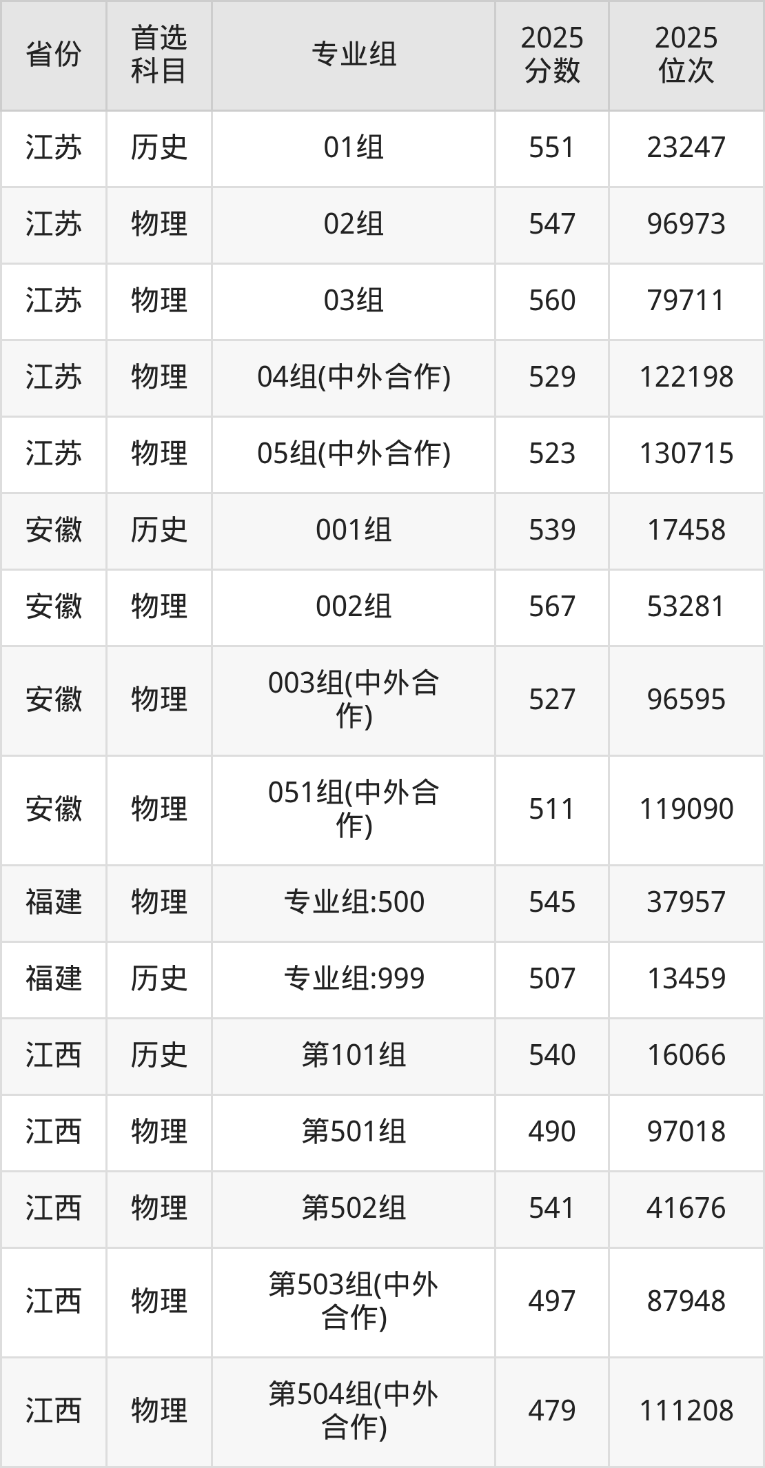 25.计算机科学与技术(中外合作办学):530分、136326位