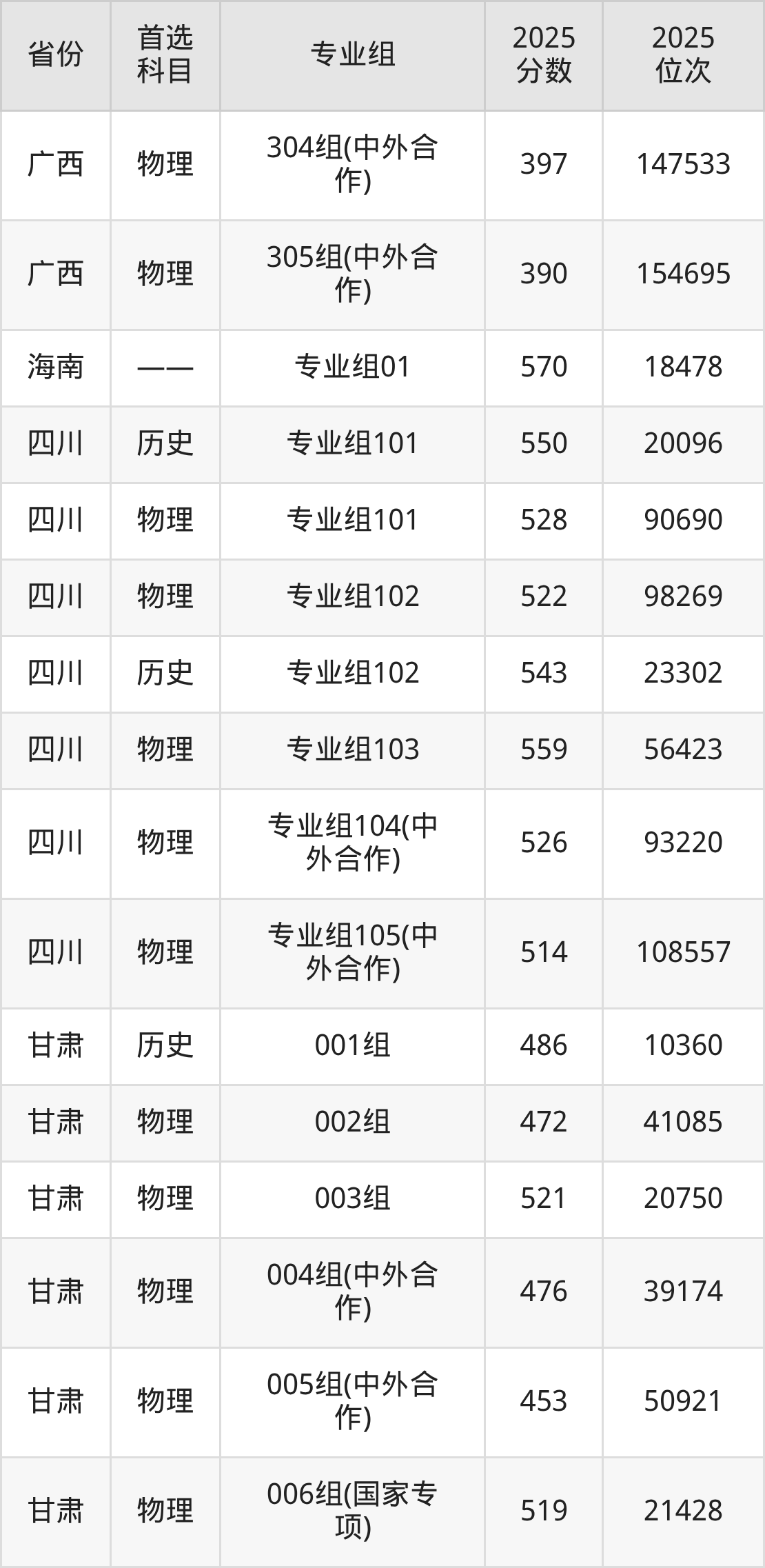 因为大部分地区目前只公布了院校(专业组)分数线,为了方便2026年考生参考,本文就整理出沈阳理工大学在全国各省不同科类的最低分: