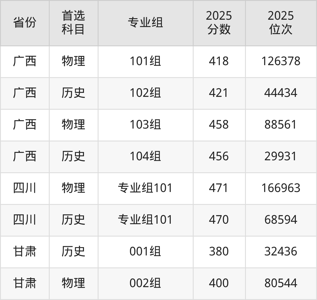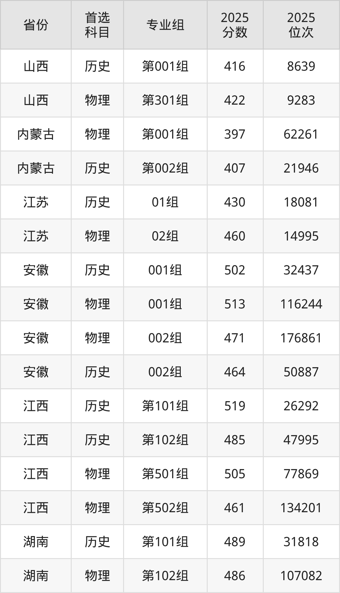 因为大部分地区目前只公布了院校(专业组)分数线,为了方便2026年考生参考,本文就整理出浙江机电职业技术大学在全国各省不同科类的最低分: