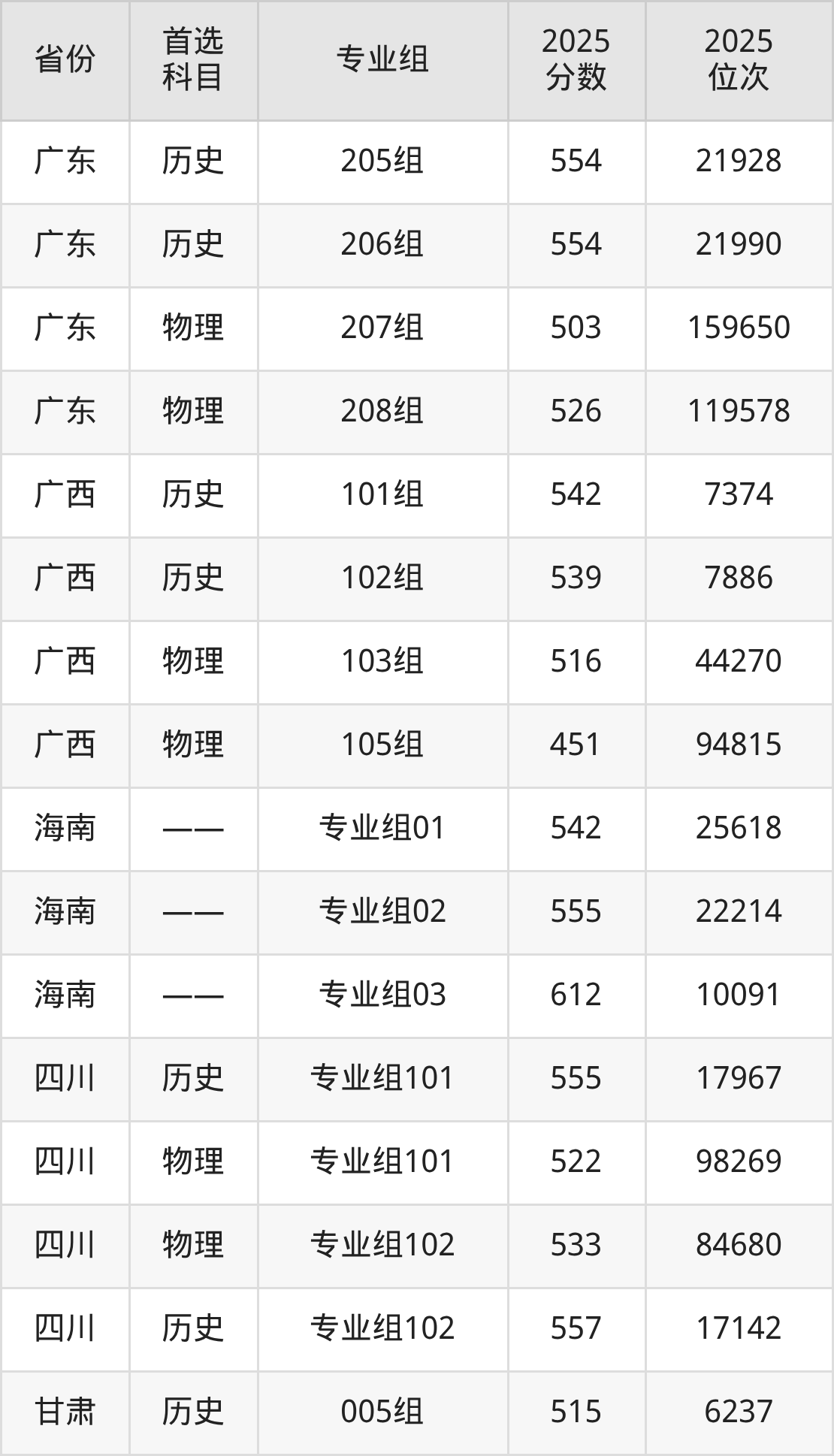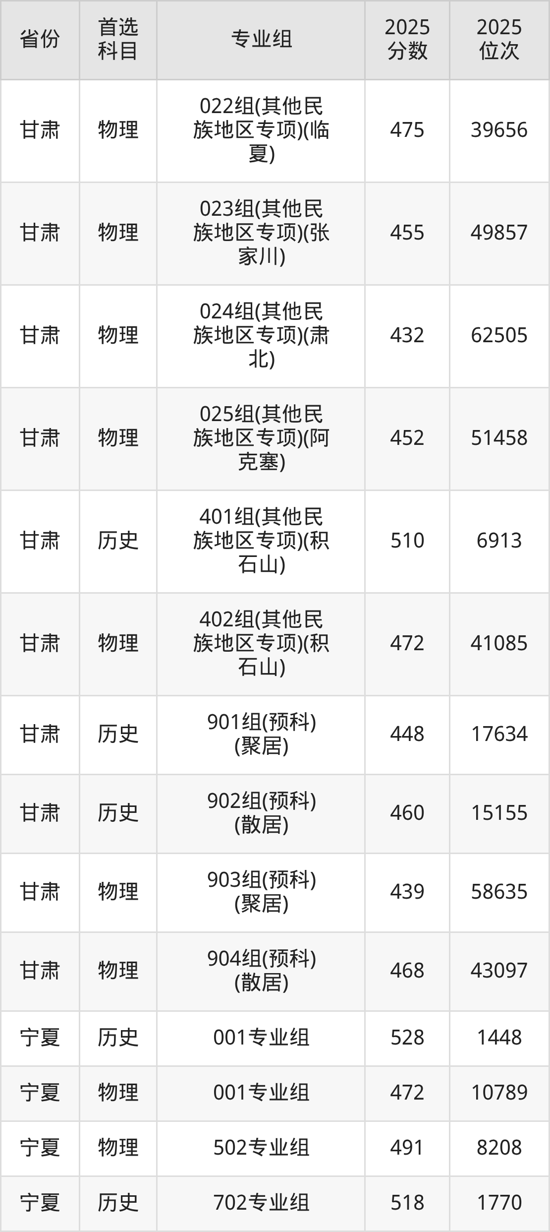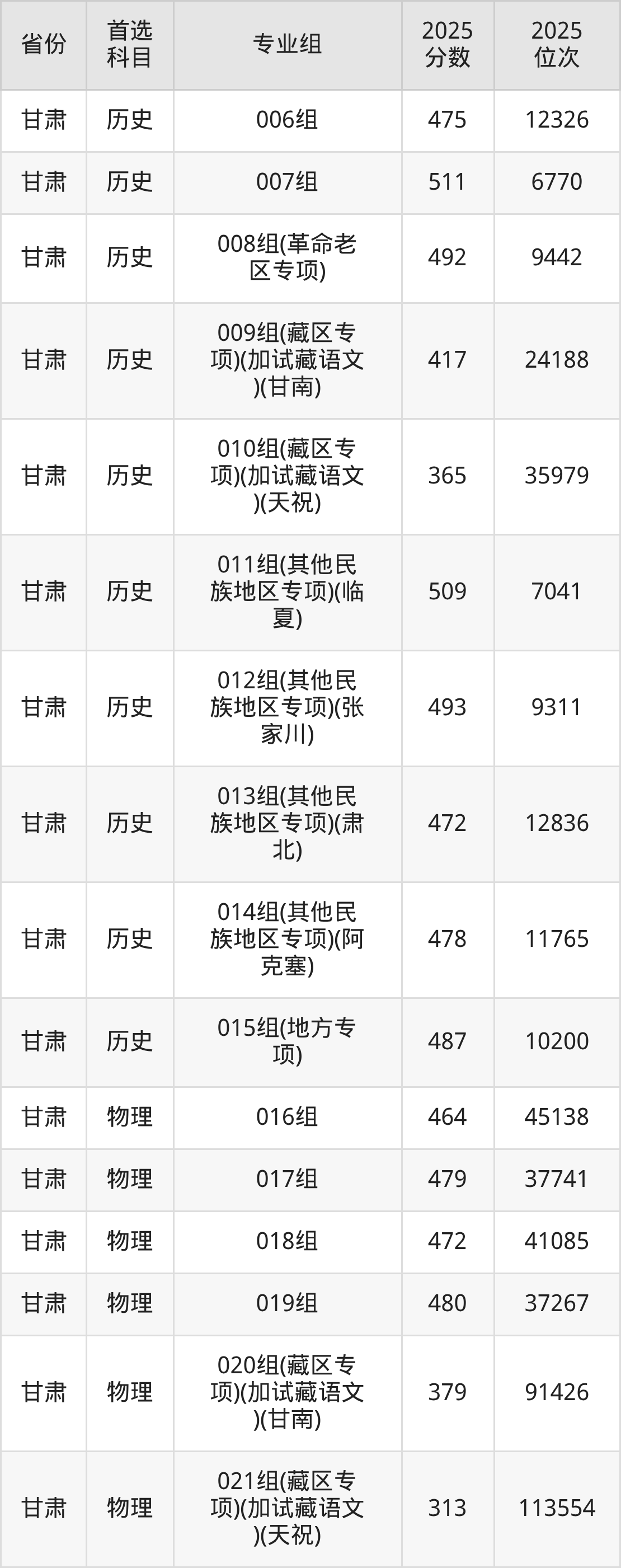 因为大部分地区目前只公布了院校(专业组)分数线,为了方便2026年考生参考,本文就整理出甘肃政法大学在全国各省不同科类的最低分: