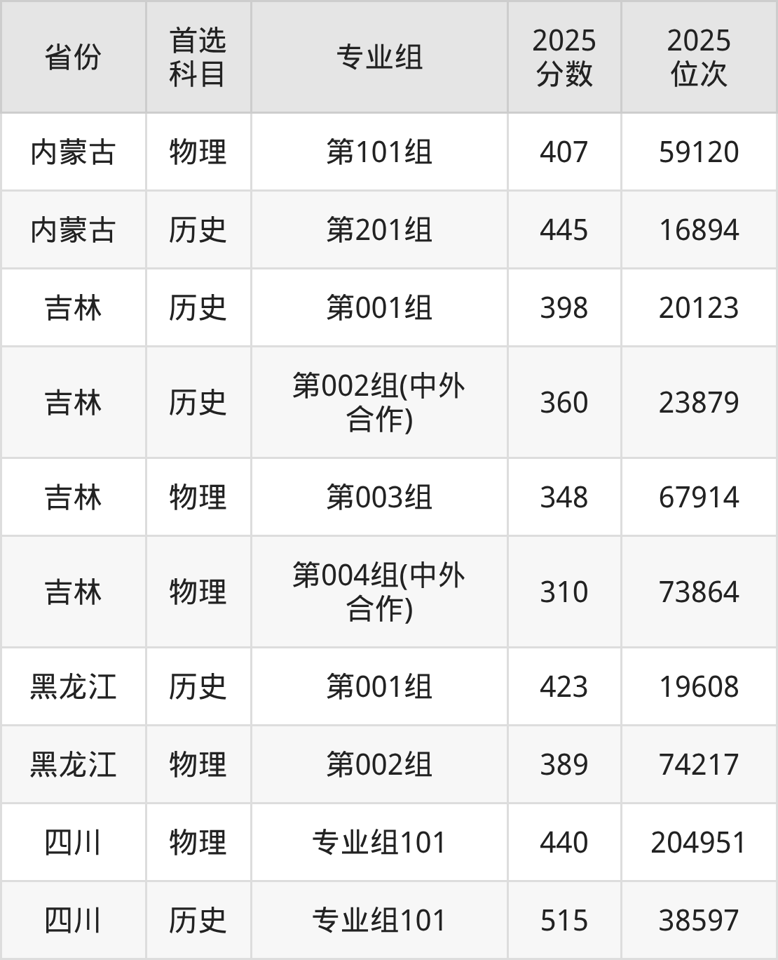 因为大部分地区目前只公布了院校(专业组)分数线,为了方便2026年考生参考,本文就整理出白城医学高等专科学校在全国各省不同科类的最低分:
