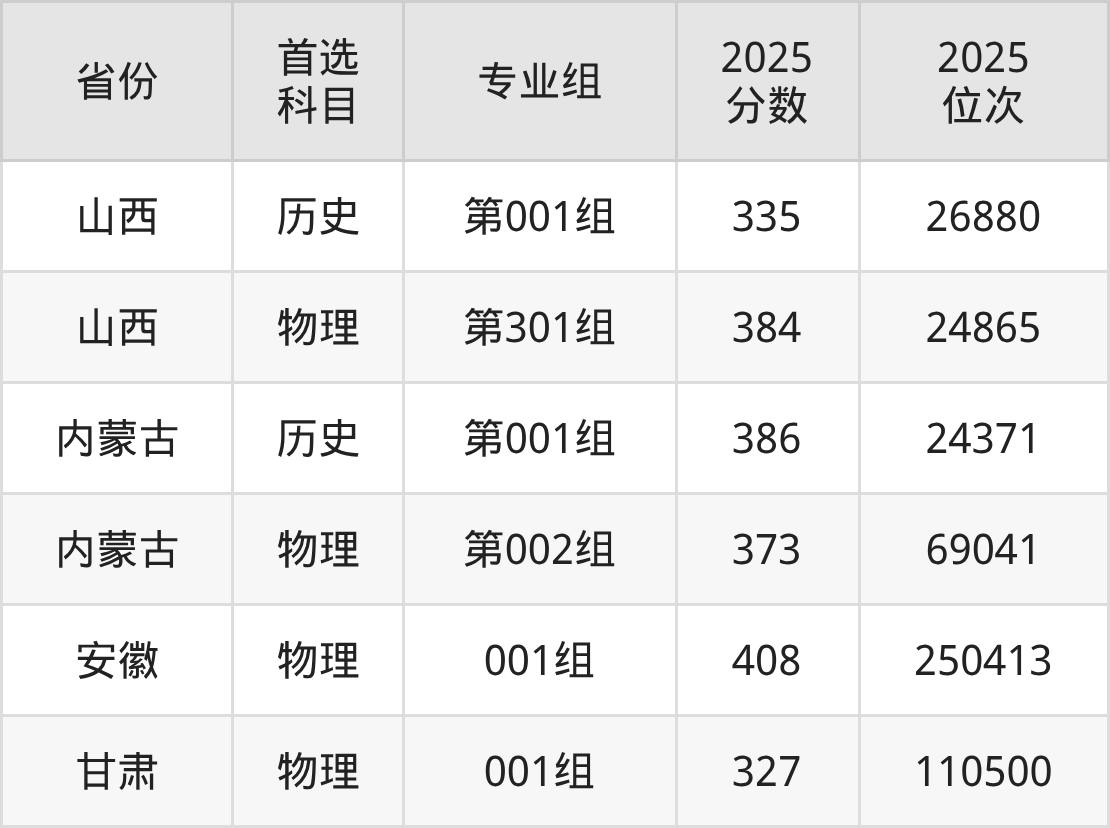 因为大部分地区目前只公布了院校(专业组)分数线,为了方便2026年考生参考,本文就整理出潍坊职业学院在全国各省不同科类的最低分:
