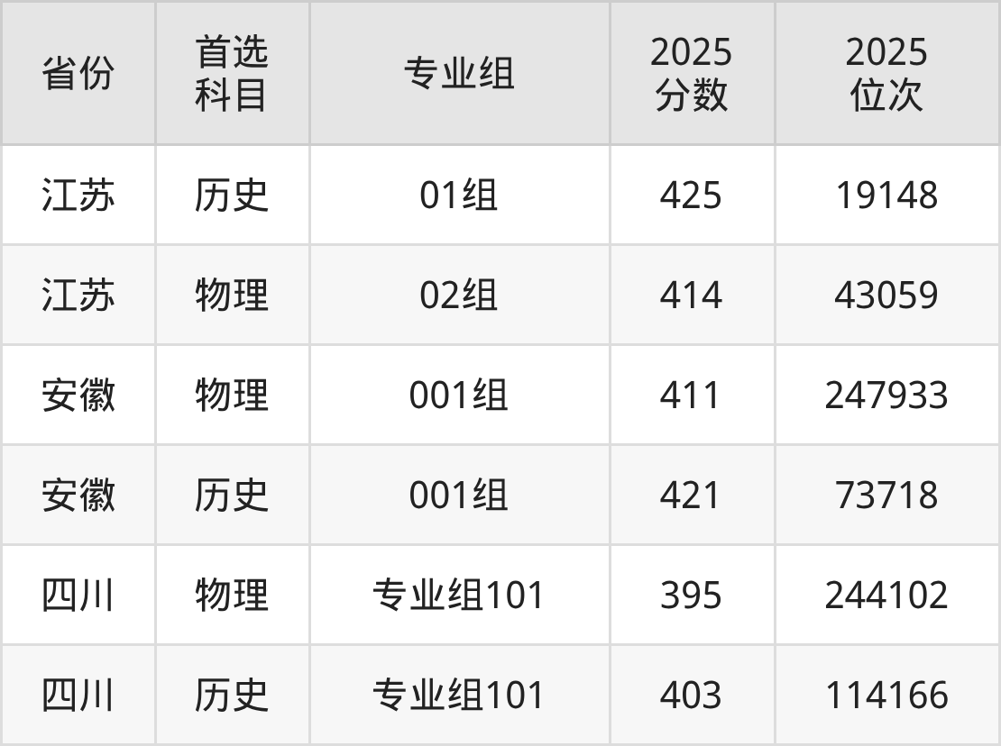 因为大部分地区目前只公布了院校(专业组)分数线,为了方便2026年考生参考,本文就整理出安徽工业经济职业技术学院在全国各省不同科类的最低分: