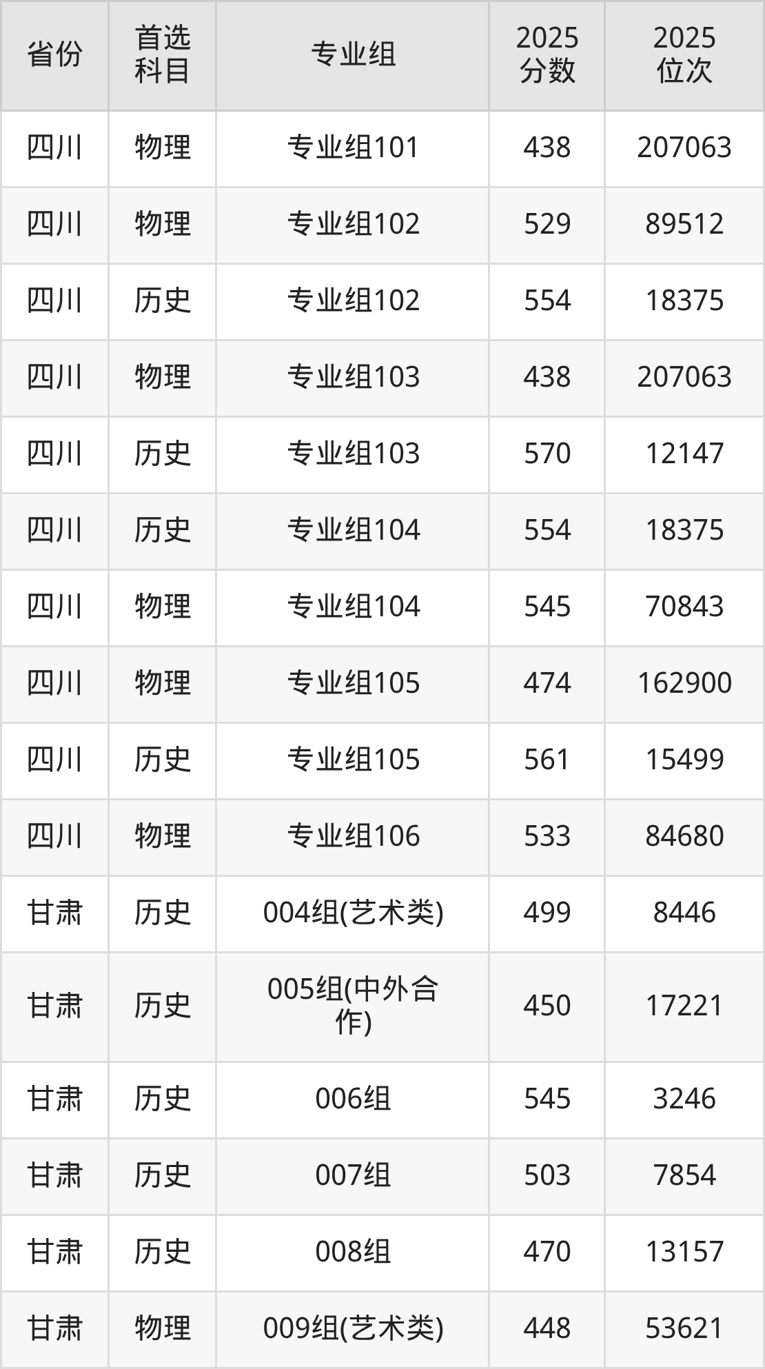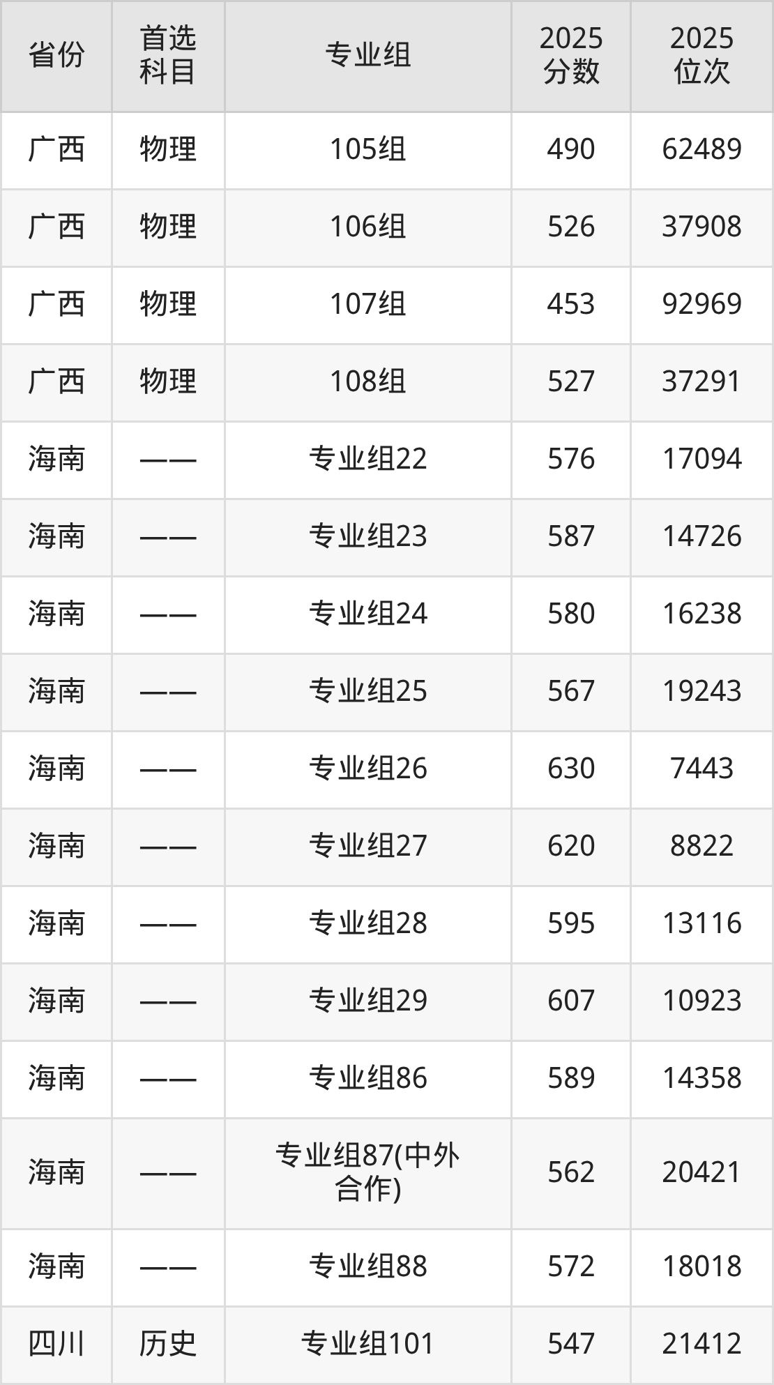 因为大部分地区目前只公布了院校(专业组)分数线,为了方便2026年考生参考,本文就整理出海南师范大学在全国各省不同科类的最低分: