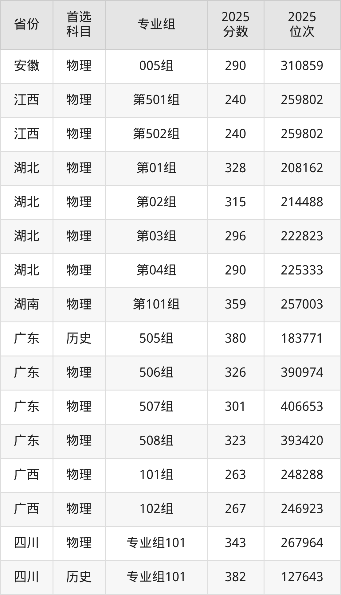 17.四川:历史类286分、168651位,物理类150分、284789位