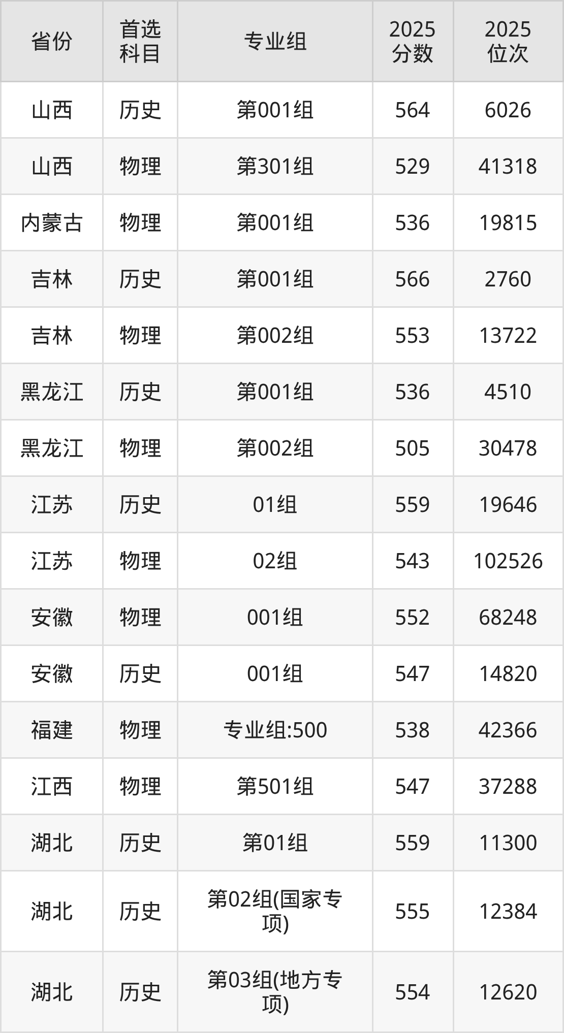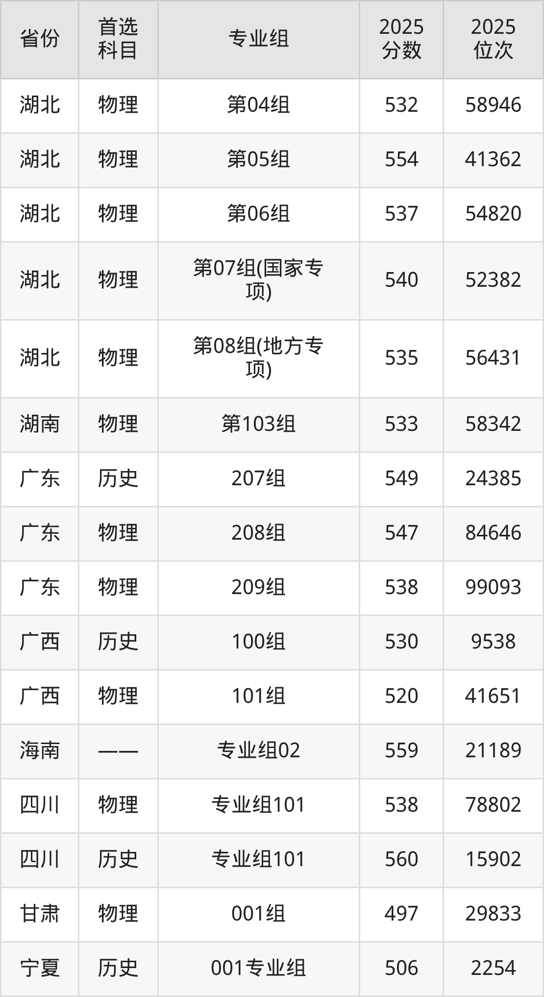 因为大部分地区目前只公布了院校(专业组)分数线,为了方便2026年考生参考,本文就整理出武汉纺织大学在全国各省不同科类的最低分: