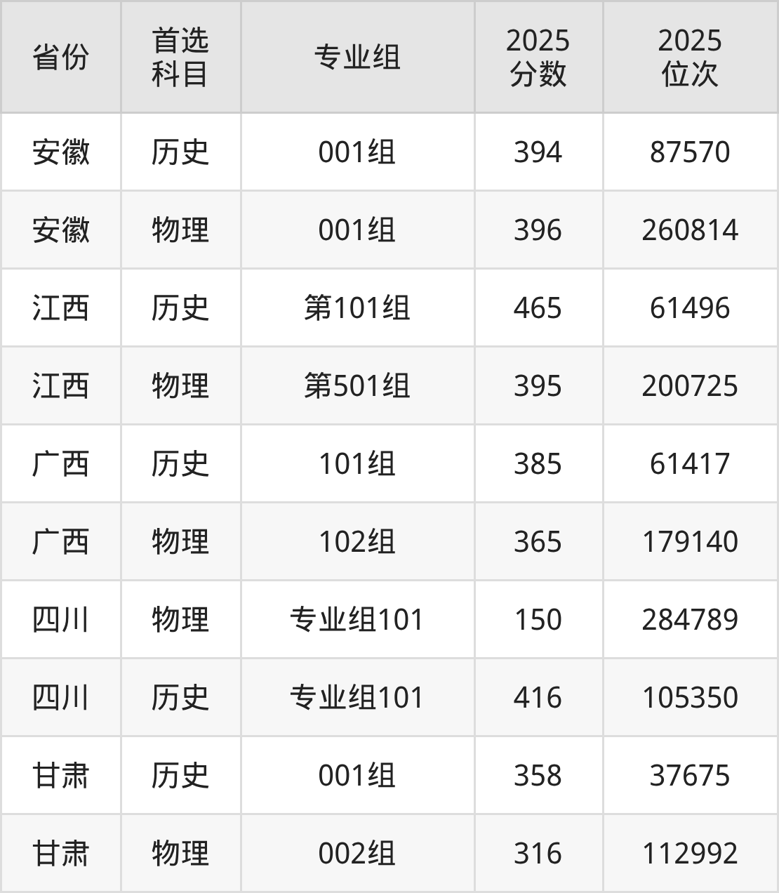 因为大部分地区目前只公布了院校(专业组)分数线,为了方便2026年考生参考,本文就整理出云南财经职业学院在全国各省不同科类的最低分: