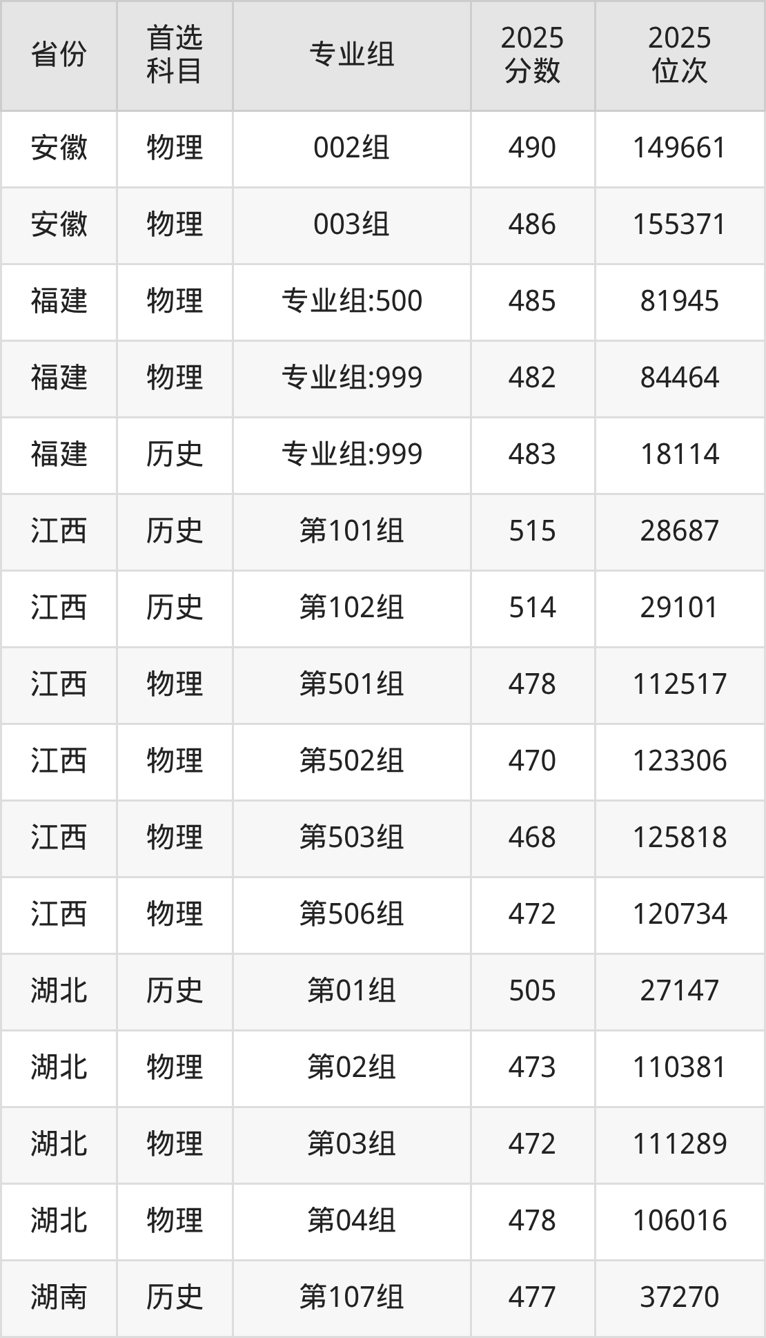 因为大部分地区目前只公布了院校(专业组)分数线,为了方便2026年考生参考,本文就整理出厦门大学嘉庚学院在全国各省不同科类的最低分: