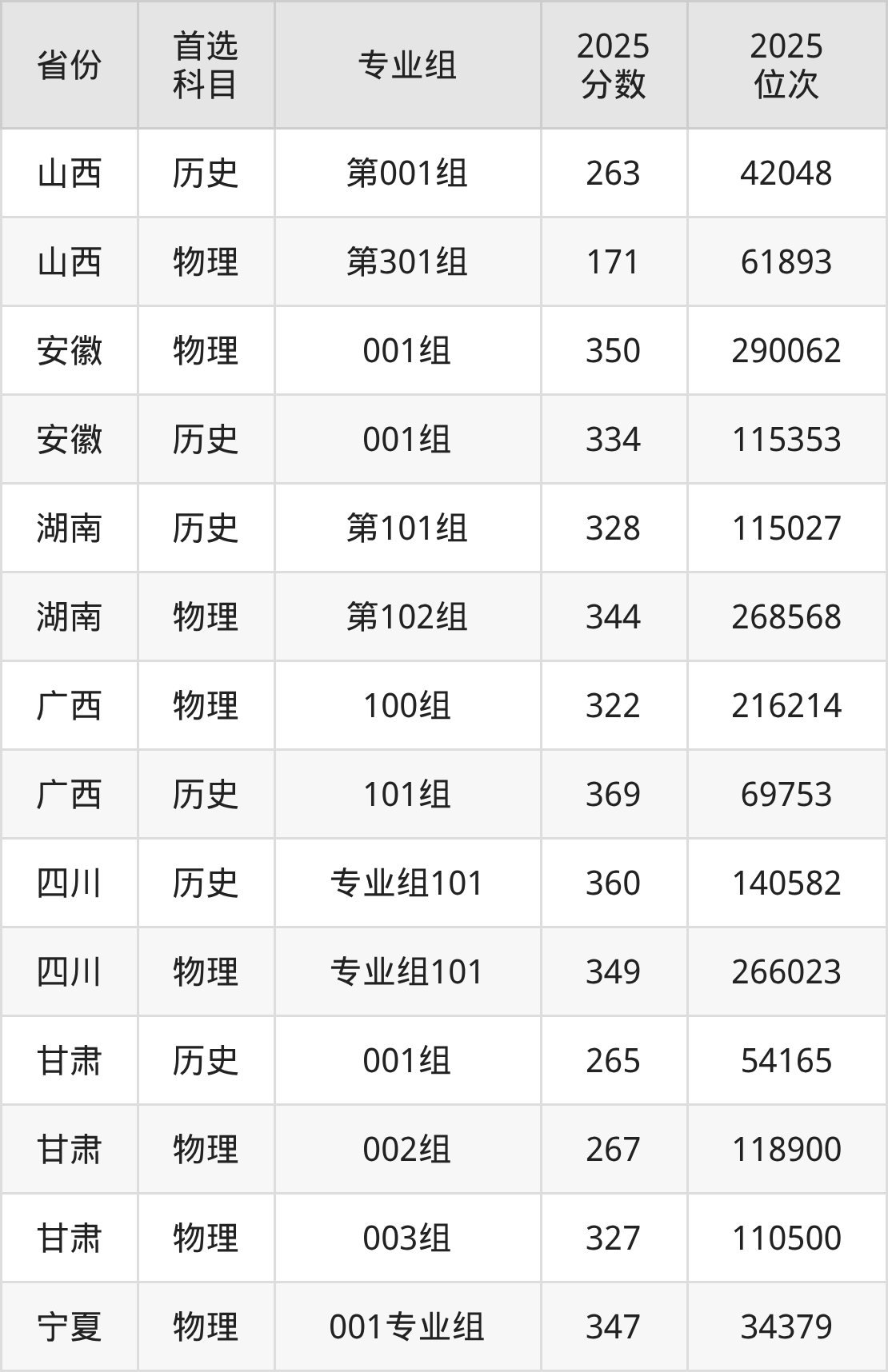 因为大部分地区目前只公布了院校(专业组)分数线,为了方便2026年考生参考,本文就整理出宁德职业技术学院在全国各省不同科类的最低分: