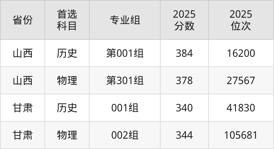 4.甘肃:历史类340分、41830位,物理类344分、105681位