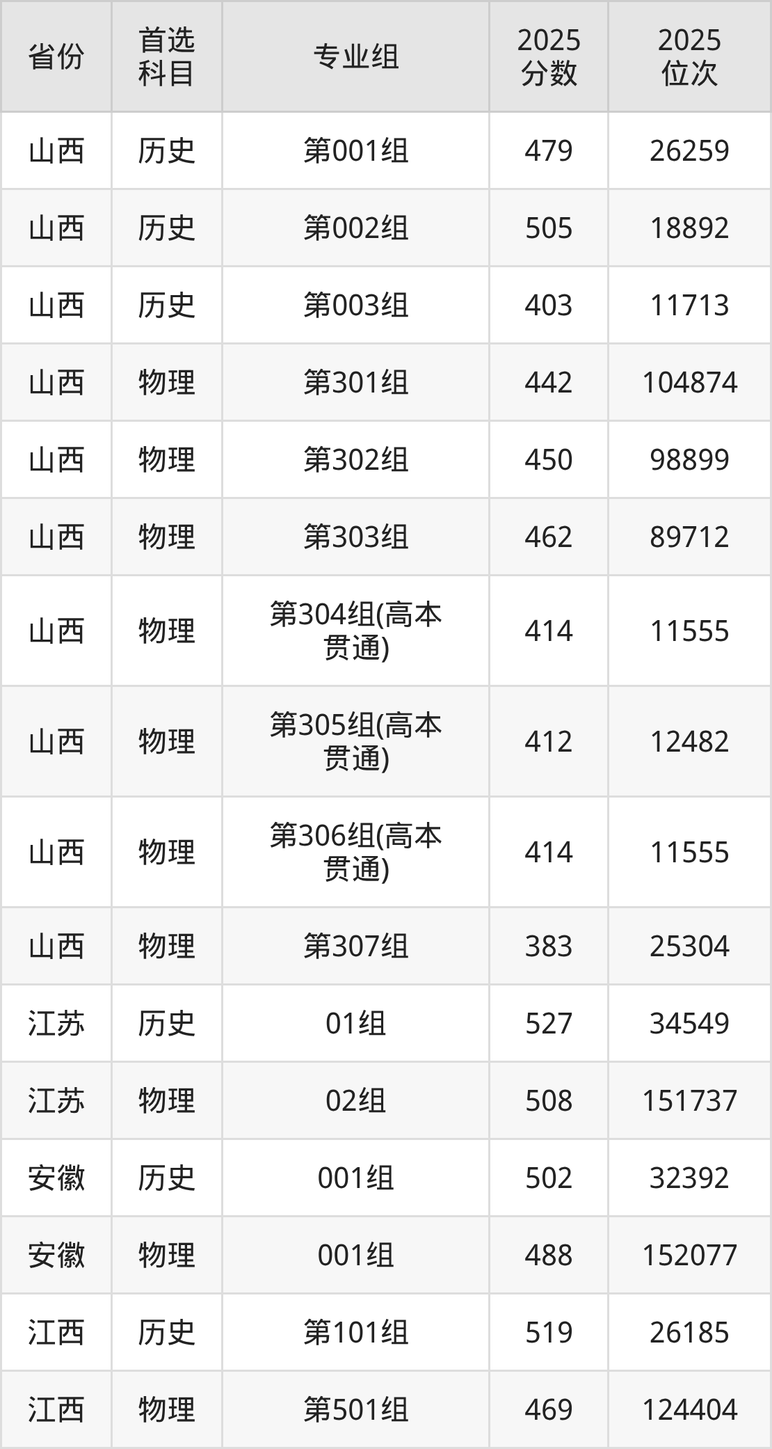 因为大部分地区目前只公布了院校(专业组)分数线,为了方便2026年考生参考,本文就整理出山西工程科技职业大学在全国各省不同科类的最低分: