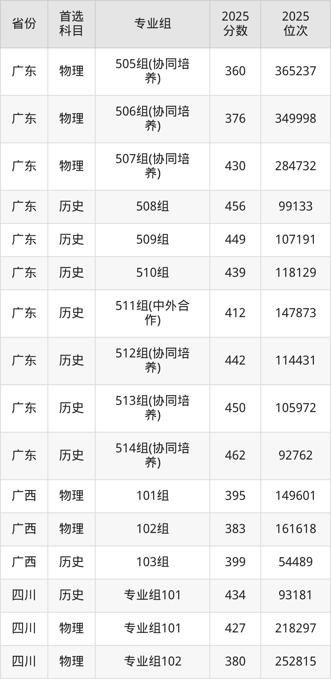 因为大部分地区目前只公布了院校(专业组)分数线,为了方便2026年考生参考,本文就整理出广东建设职业技术学院在全国各省不同科类的最低分: