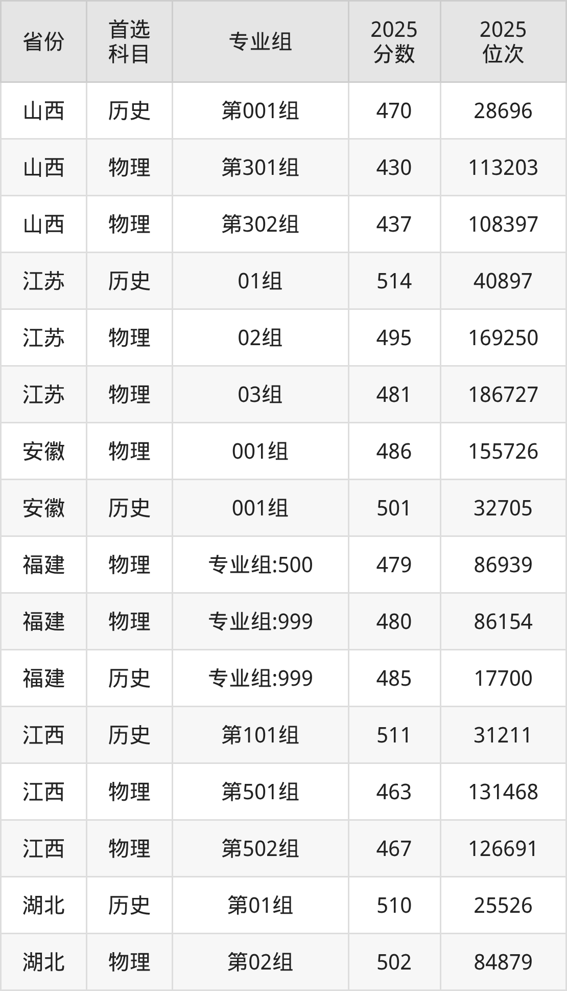 因为大部分地区目前只公布了院校(专业组)分数线,为了方便2026年考生参考,本文就整理出浙江工业大学之江学院在全国各省不同科类的最低分: