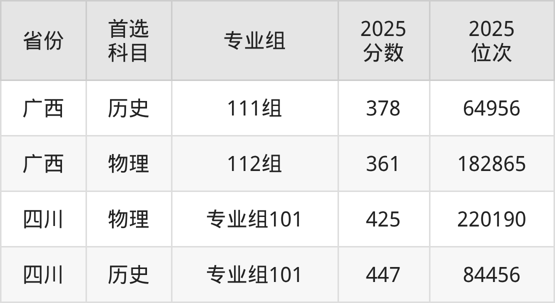 因为大部分地区目前只公布了院校(专业组)分数线,为了方便2026年考生参考,本文就整理出云南司法警官职业学院在全国各省不同科类的最低分: