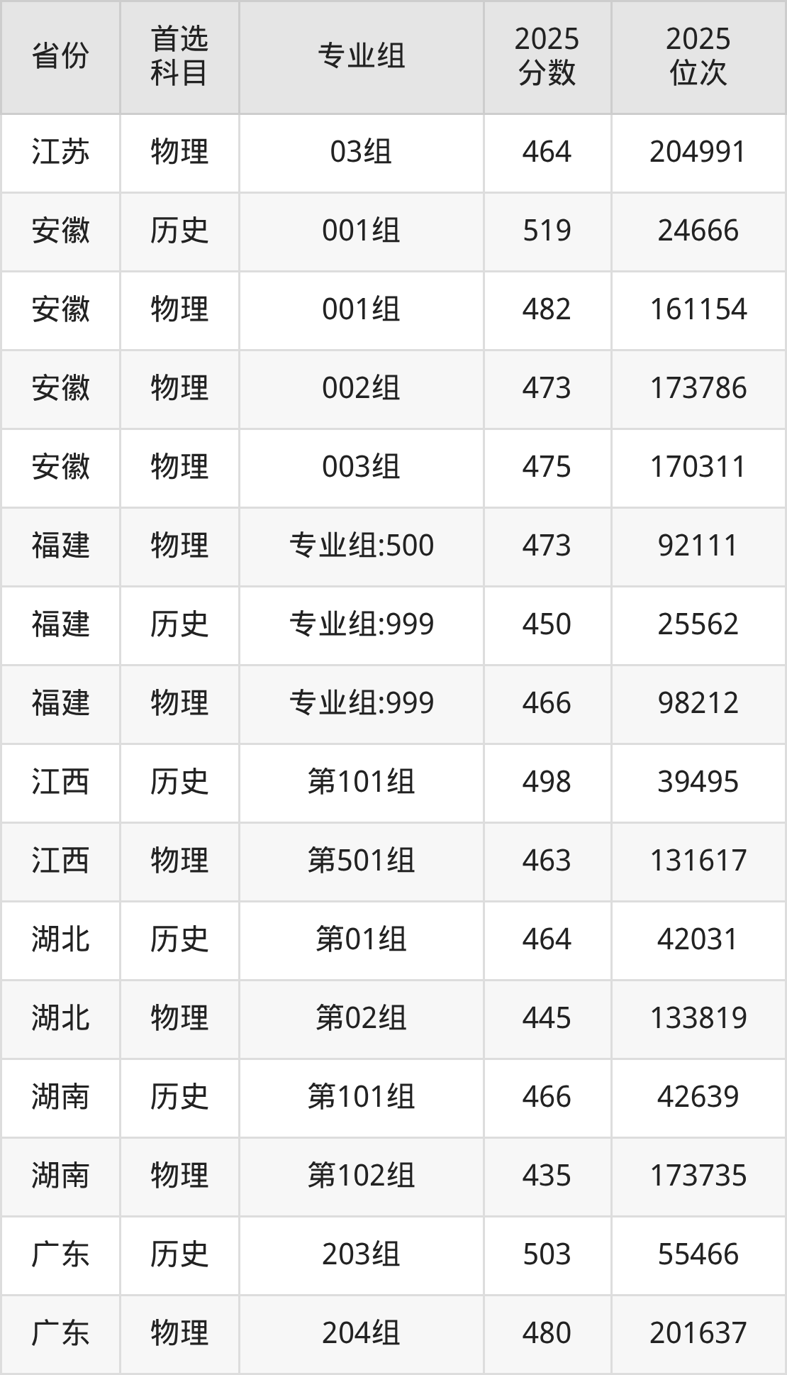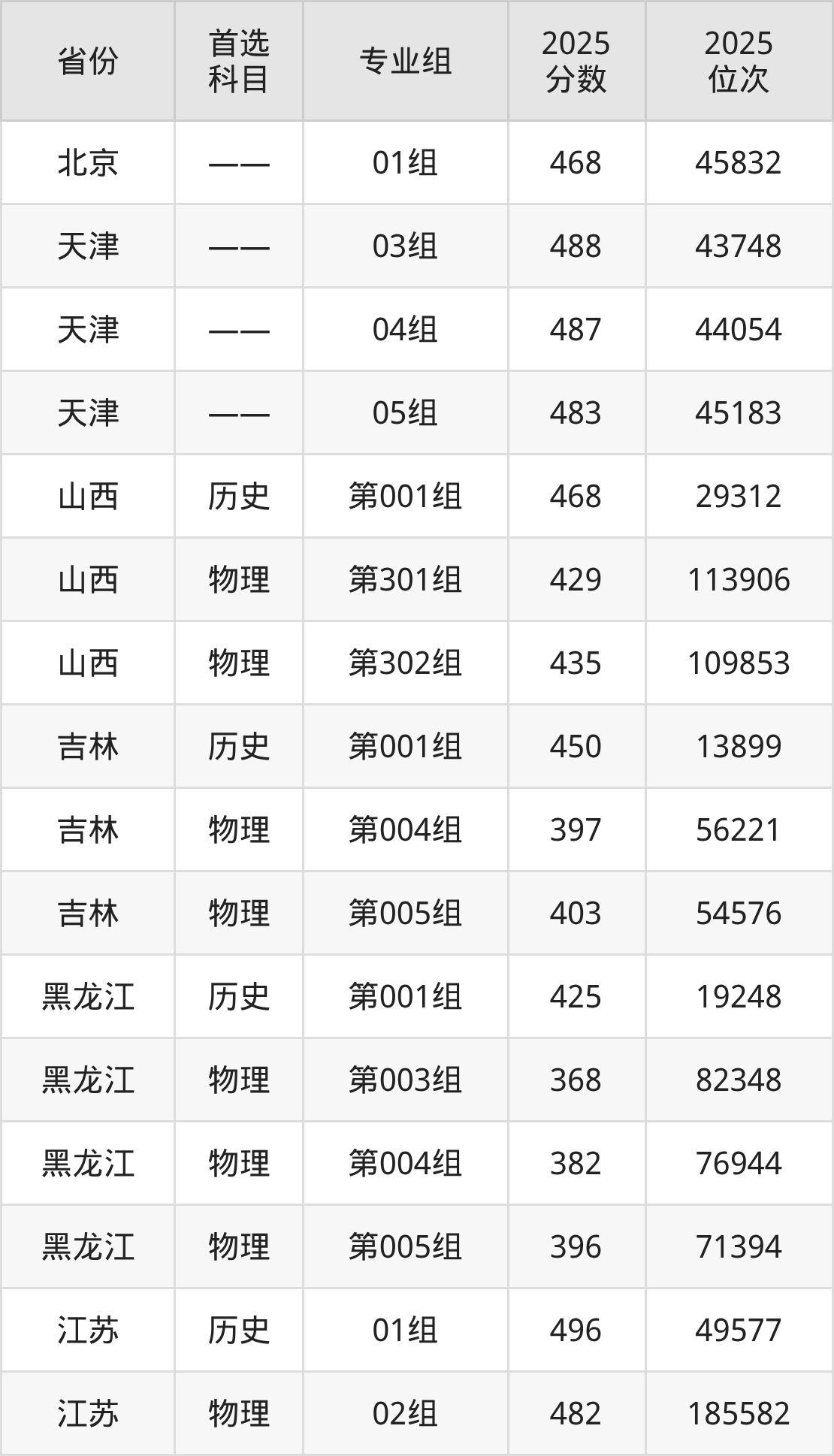 因为大部分地区目前只公布了院校(专业组)分数线,为了方便2026年考生参考,本文就整理出华北理工大学轻工学院在全国各省不同科类的最低分: