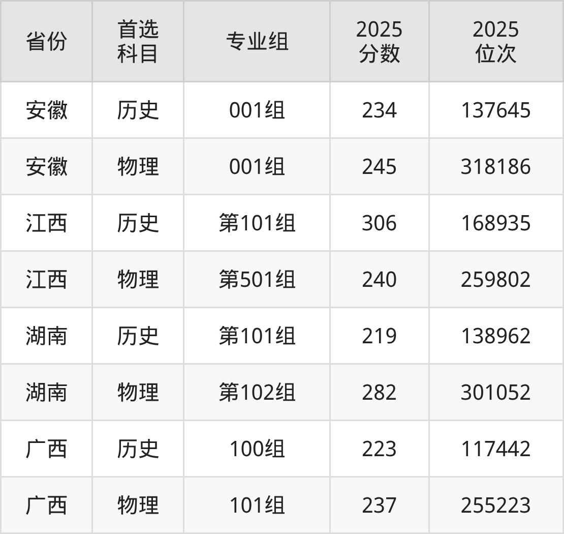 因为大部分地区目前只公布了院校(专业组)分数线,为了方便2026年考生参考,本文就整理出江西泰豪动漫职业学院在全国各省不同科类的最低分: