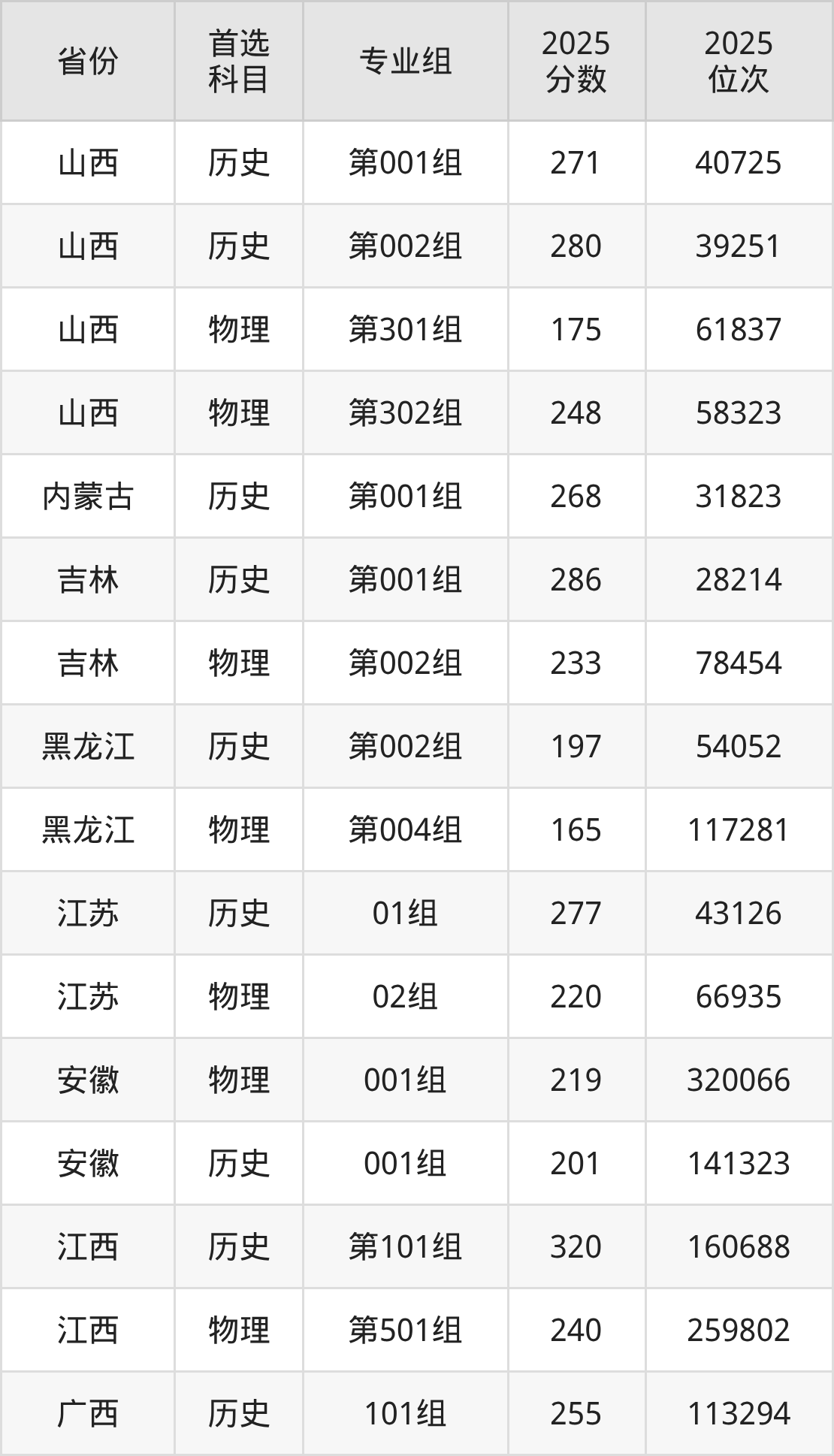 因为大部分地区目前只公布了院校(专业组)分数线,为了方便2026年考生参考,本文就整理出哈尔滨北方航空职业技术学院在全国各省不同科类的最低分: