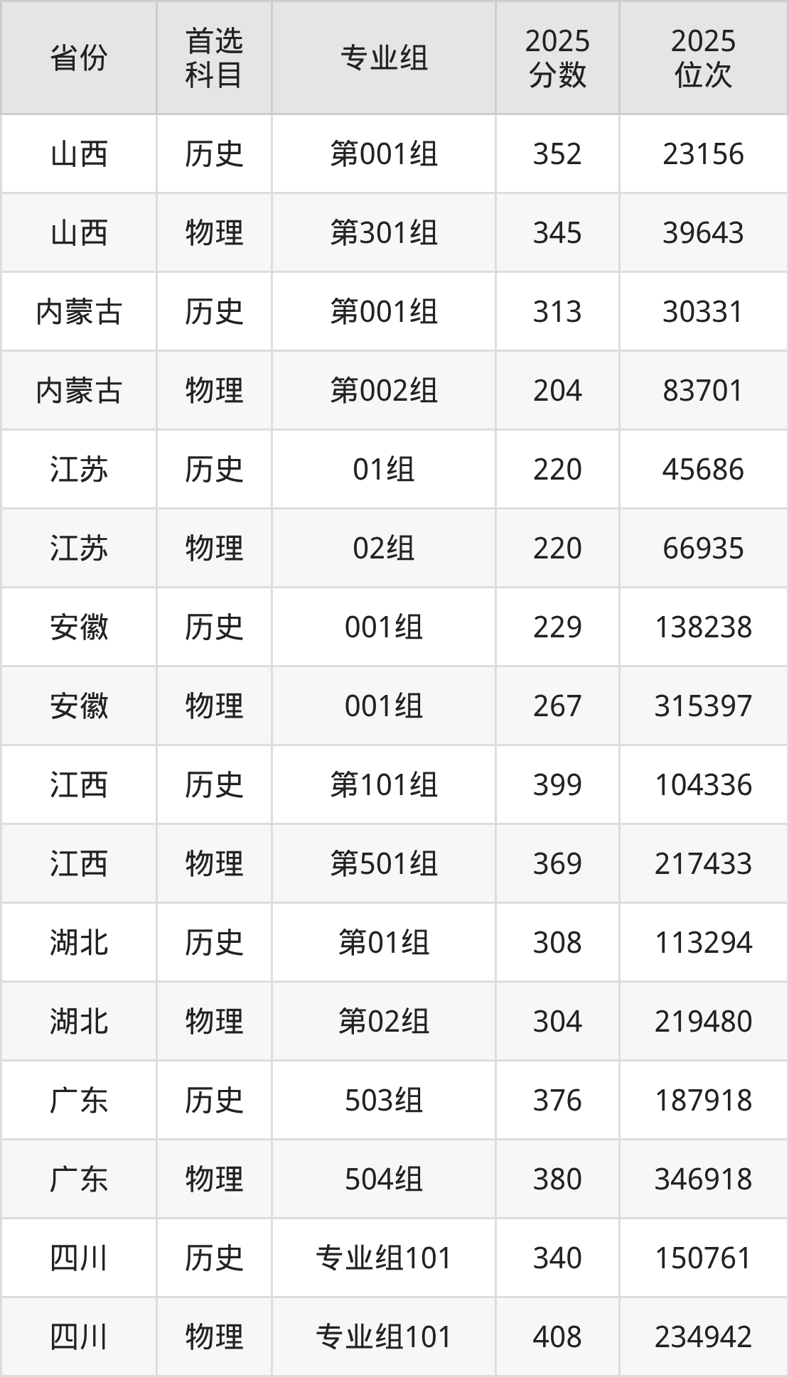 12.四川:物理类408分、234942位,历史类340分、150761位