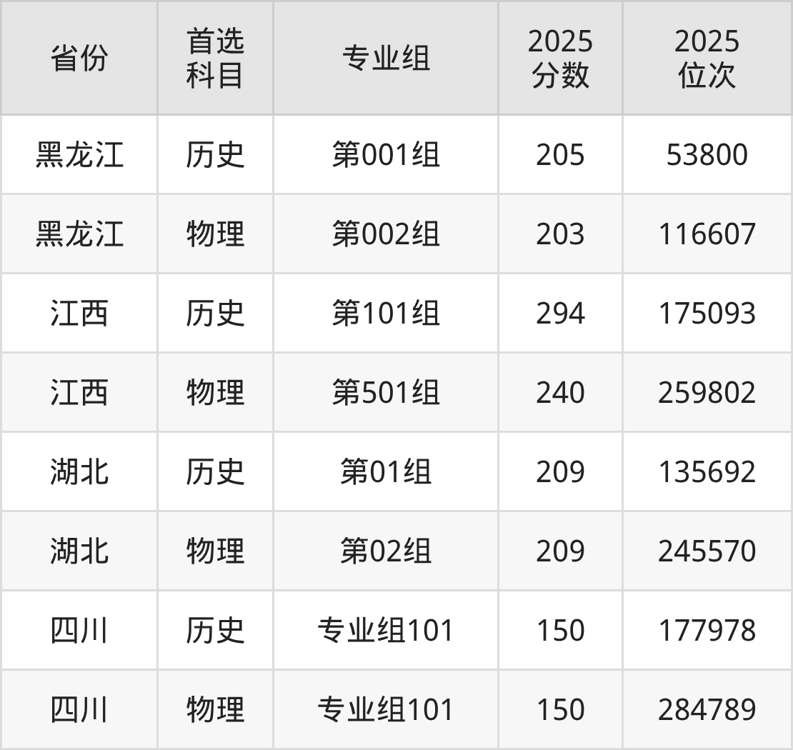 因为大部分地区目前只公布了院校(专业组)分数线,为了方便2026年考生参考,本文就整理出江阳城建职业学院在全国各省不同科类的最低分: