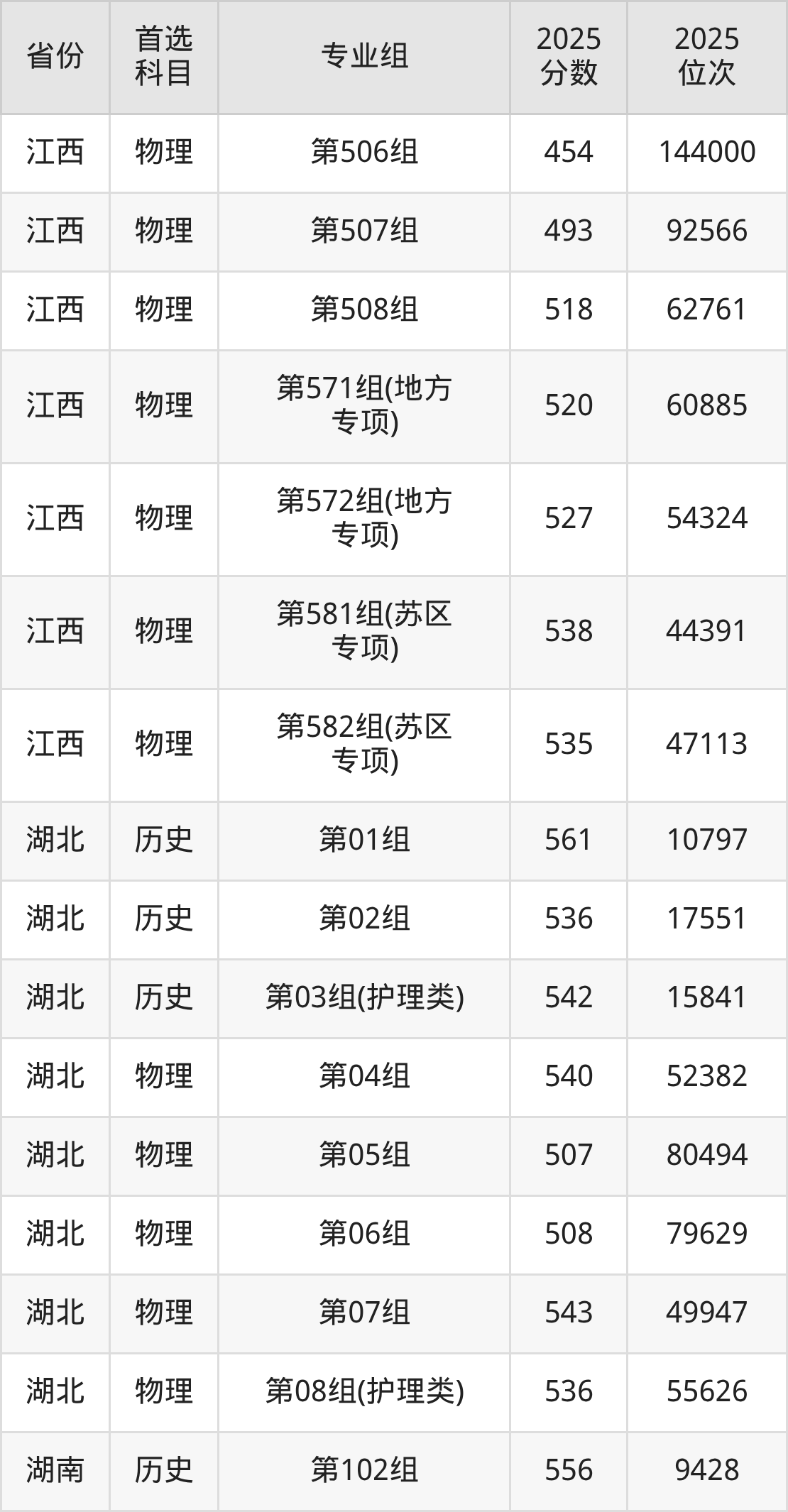 因为大部分地区目前只公布了院校(专业组)分数线,为了方便2026年考生参考,本文就整理出江西中医药大学在全国各省不同科类的最低分: