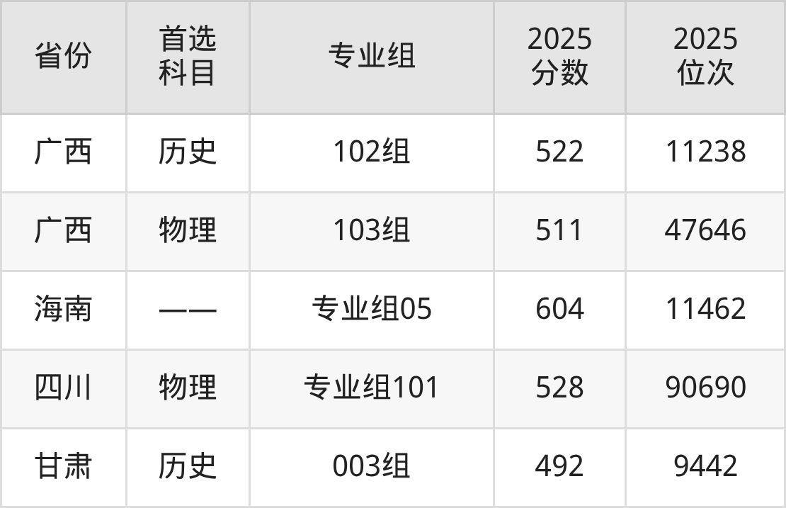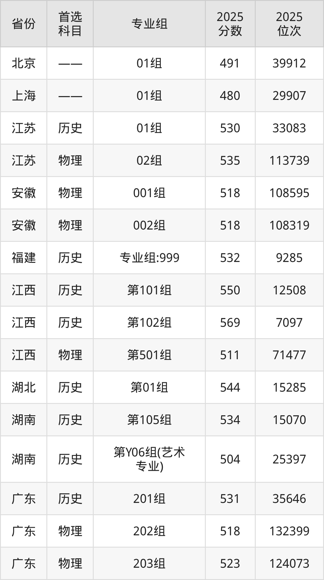 因为大部分地区目前只公布了院校(专业组)分数线,为了方便2026年考生参考,本文就整理出广州体育学院在全国各省不同科类的最低分: