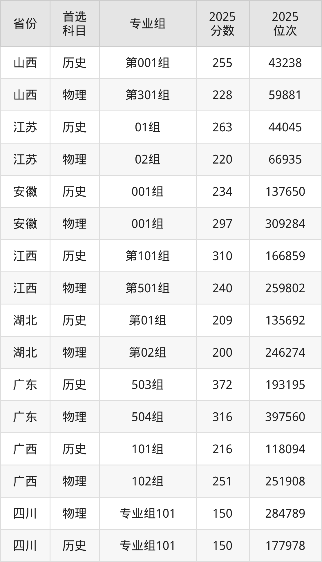 11.四川:历史类150分、177978位,物理类150分、284789位