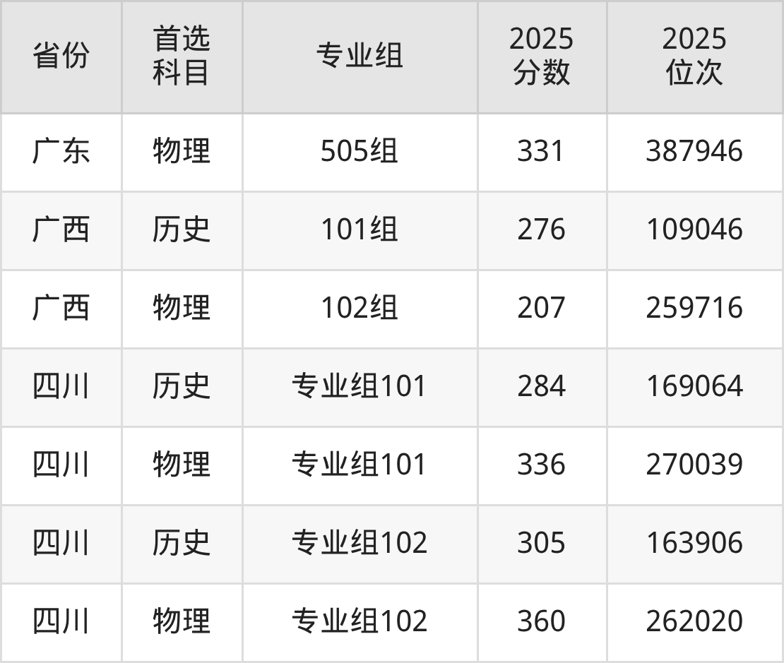 因为大部分地区目前只公布了院校(专业组)分数线,为了方便2026年考生参考,本文就整理出三亚理工职业学院在全国各省不同科类的最低分: