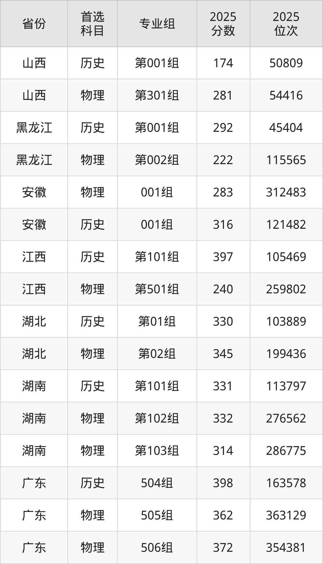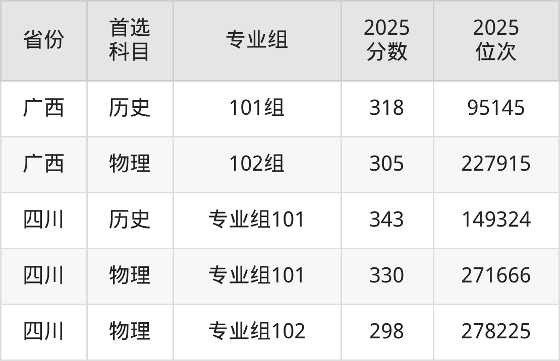因为大部分地区目前只公布了院校(专业组)分数线,为了方便2026年考生参考,本文就整理出梧州职业学院在全国各省不同科类的最低分: