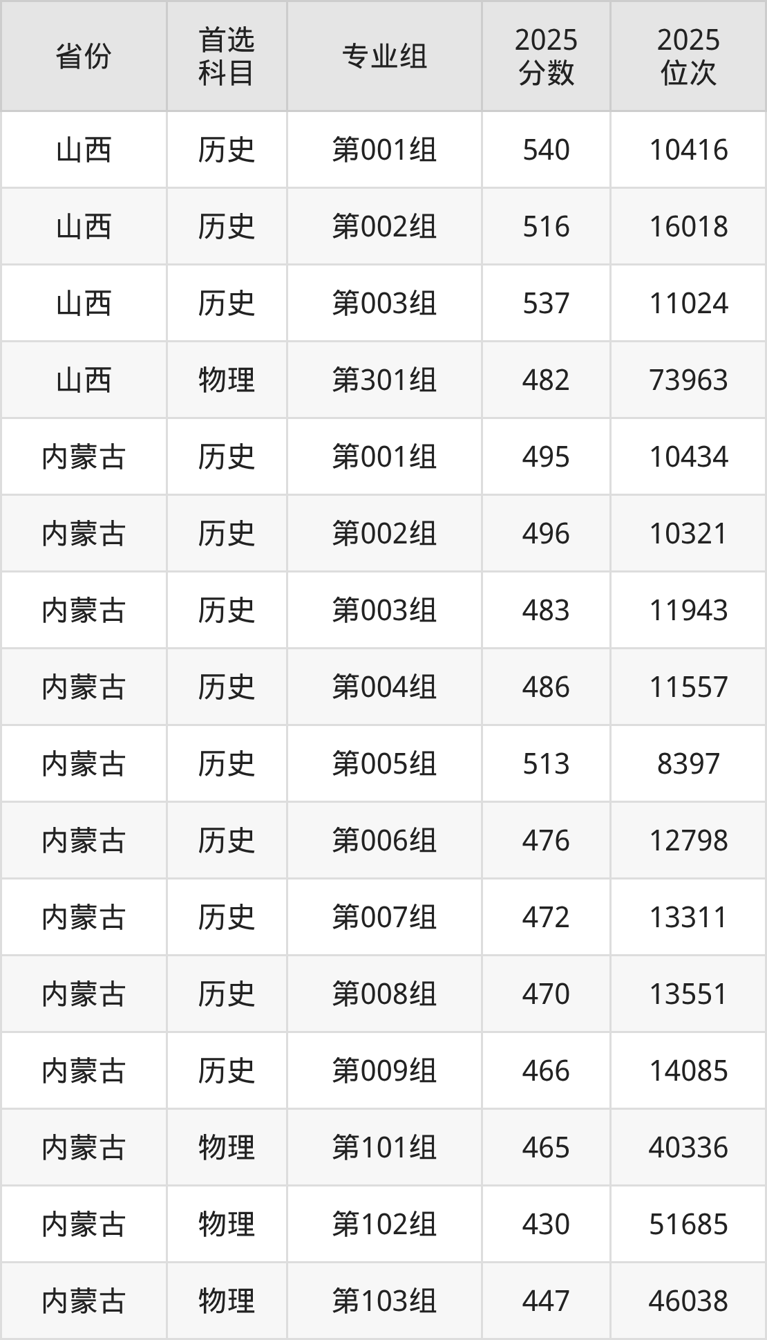 3.内蒙古:历史类466分、14085位,物理类415分、56591位
