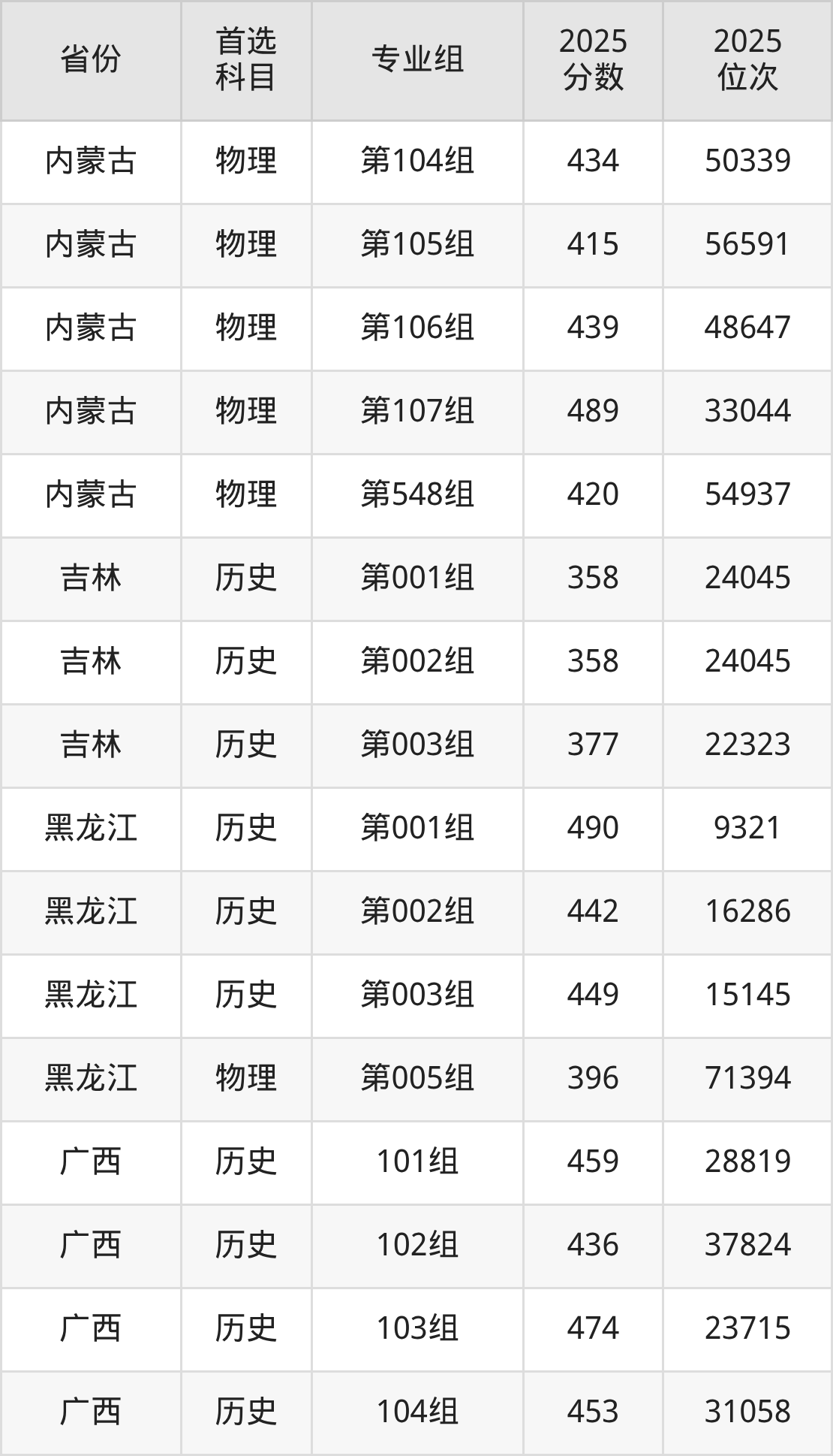因为大部分地区目前只公布了院校(专业组)分数线,为了方便2026年考生参考,本文就整理出呼和浩特民族学院在全国各省不同科类的最低分: