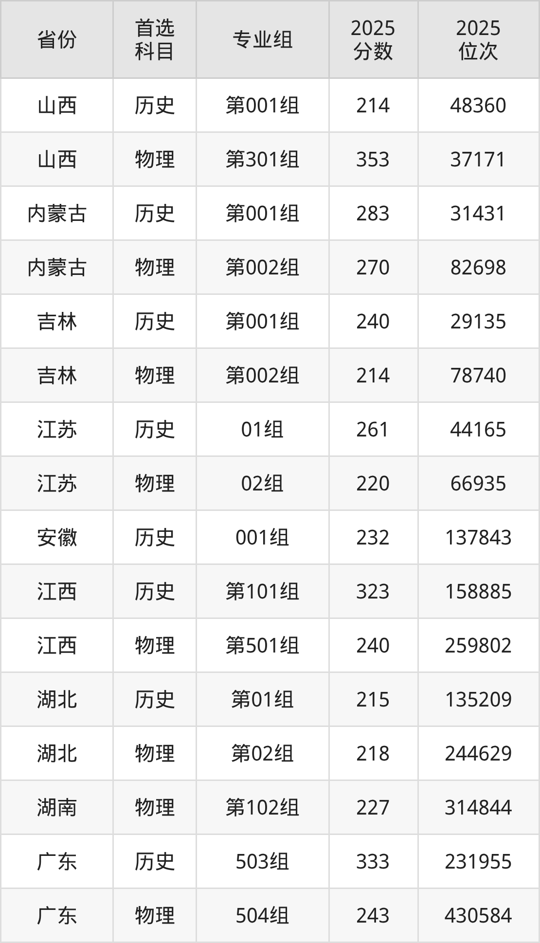 因为大部分地区目前只公布了院校(专业组)分数线,为了方便2026年考生参考,本文就整理出曲阜远东职业技术学院在全国各省不同科类的最低分: