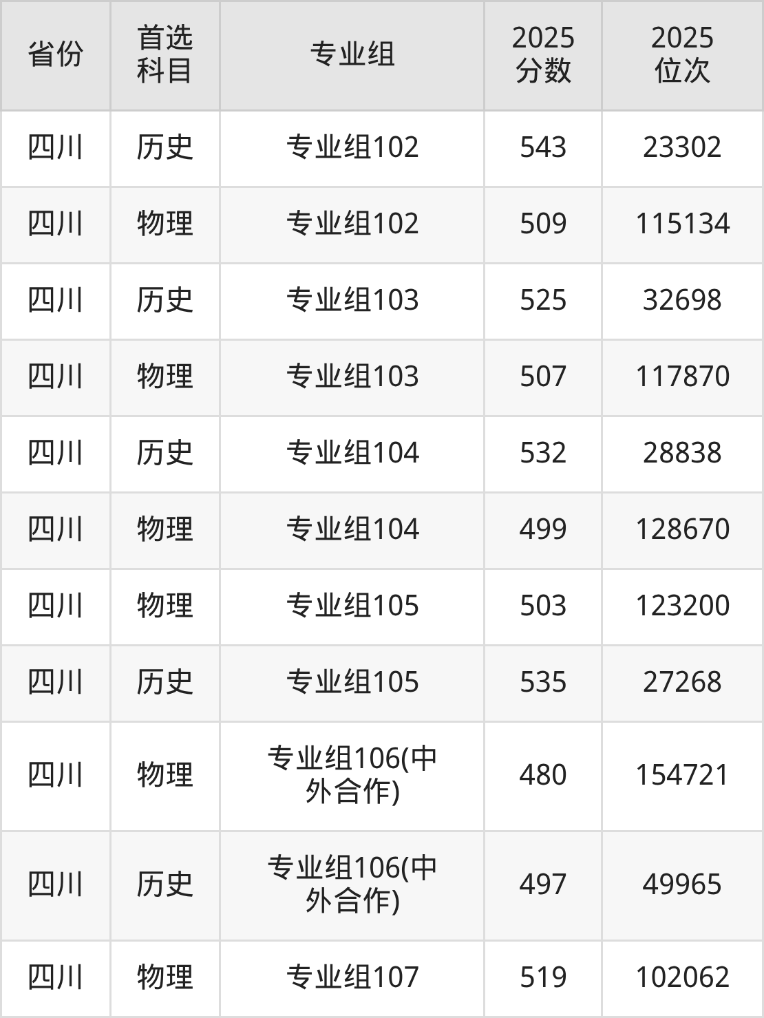 因为大部分地区目前只公布了院校(专业组)分数线,为了方便2026年考生参考,本文就整理出成都体育学院在全国各省不同科类的最低分: