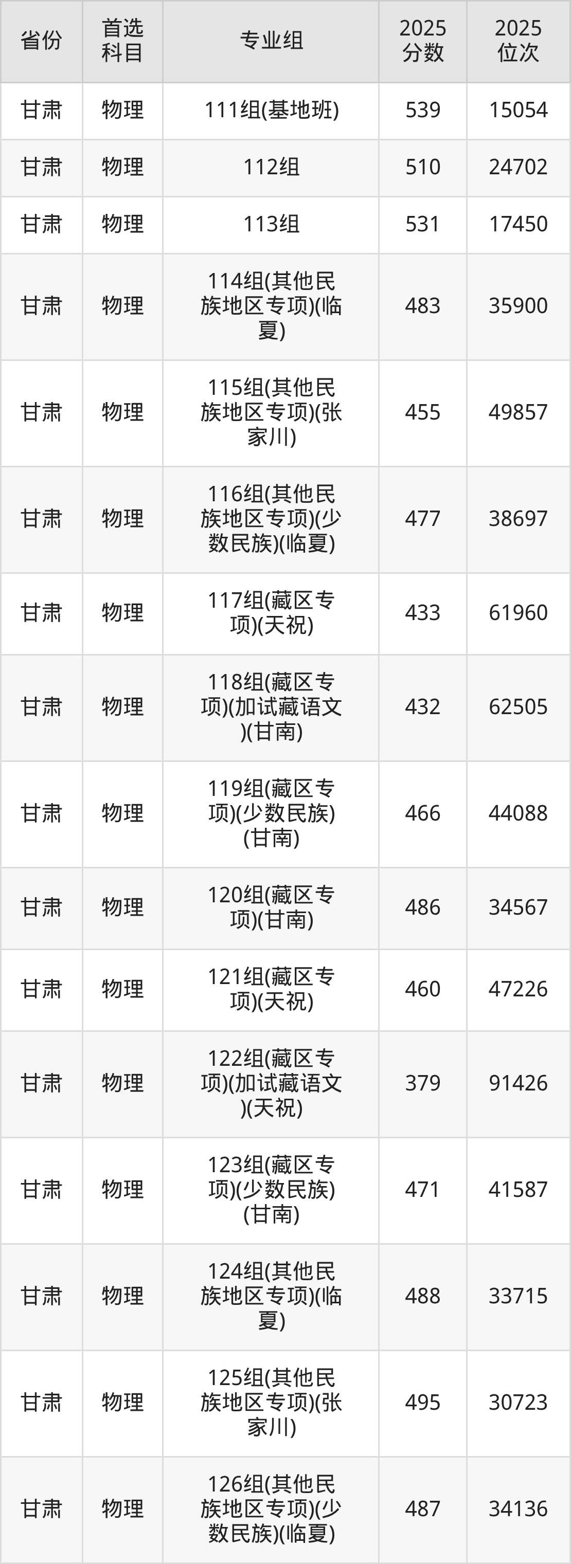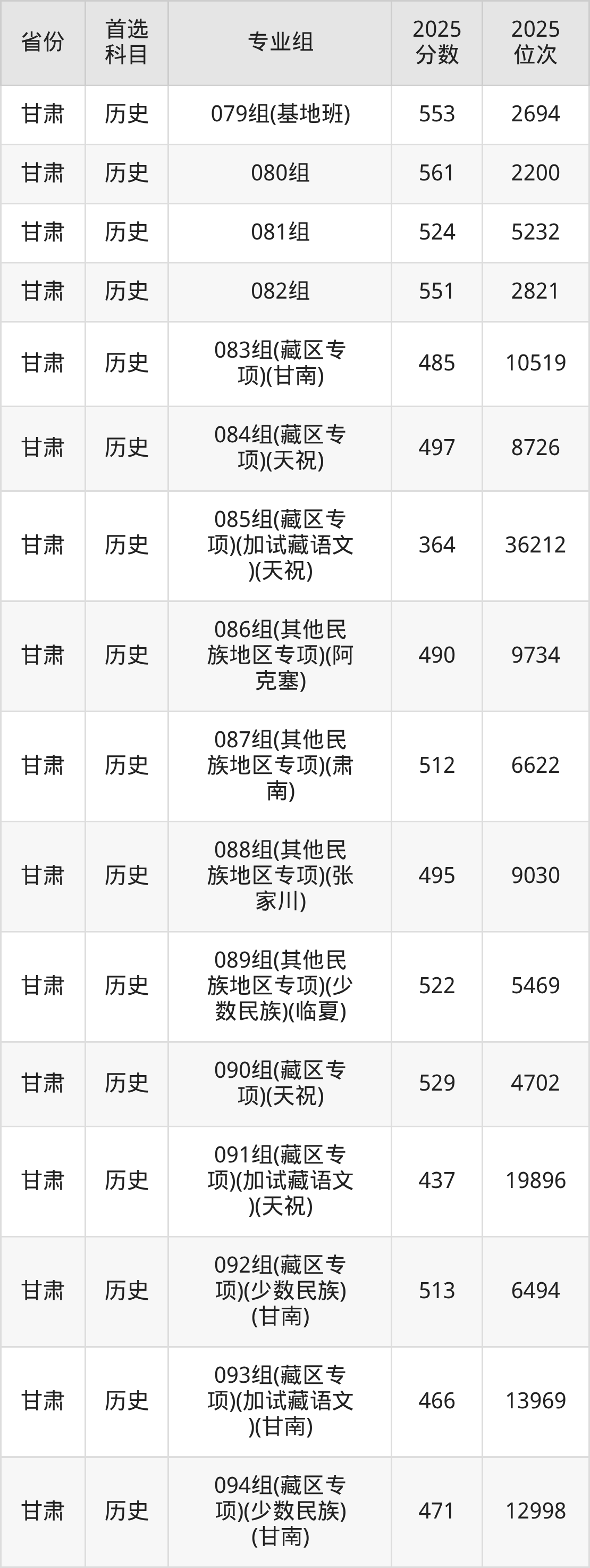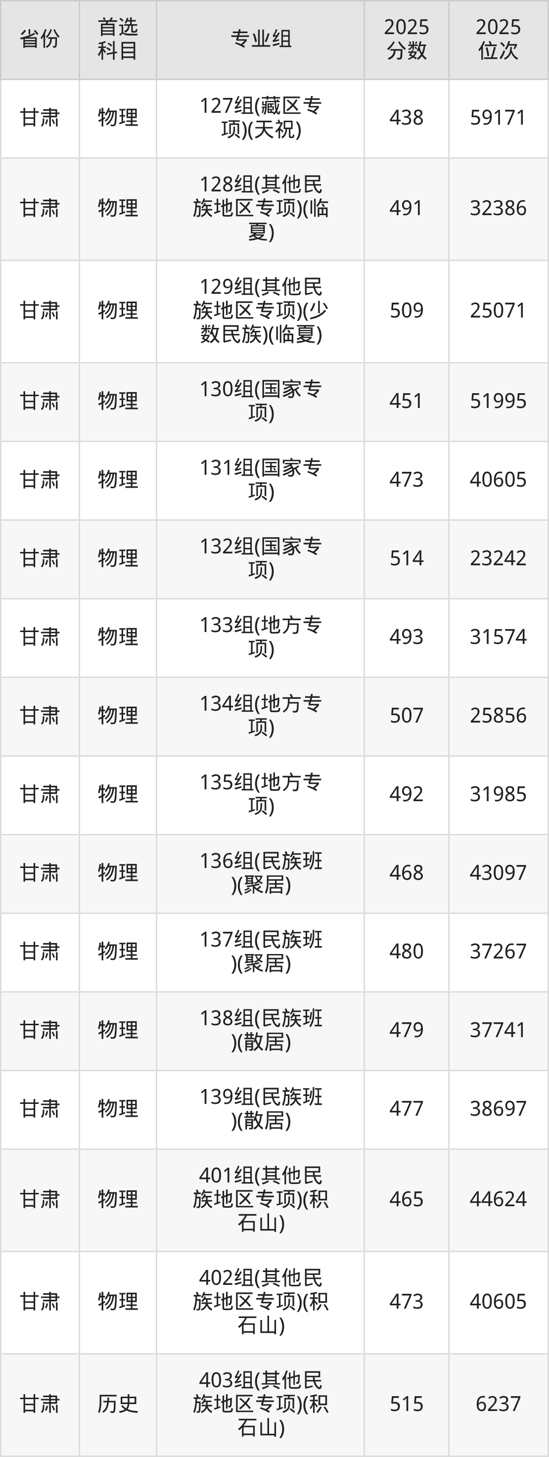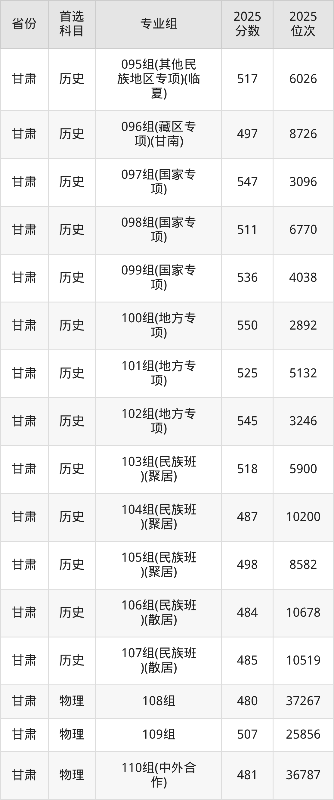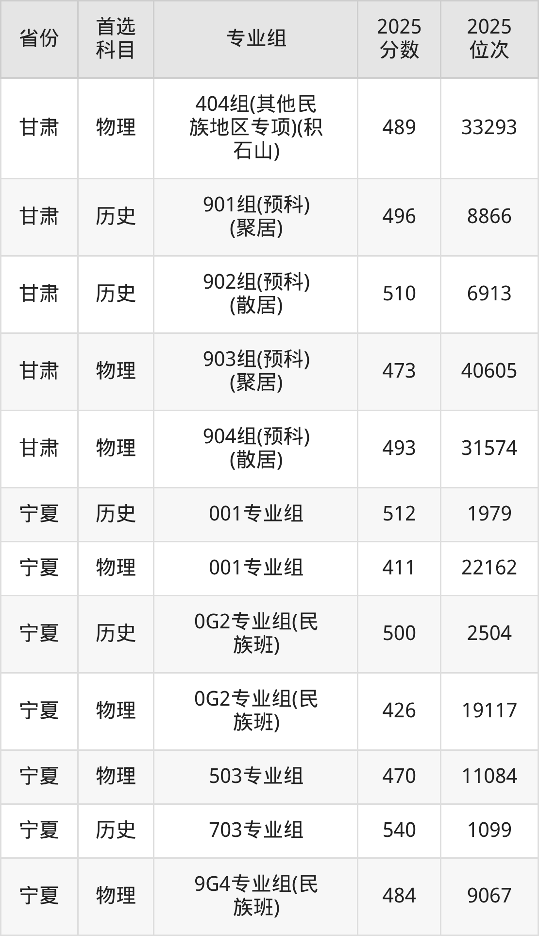 因为大部分地区目前只公布了院校(专业组)分数线,为了方便2026年考生参考,本文就整理出西北师范大学在全国各省不同科类的最低分: