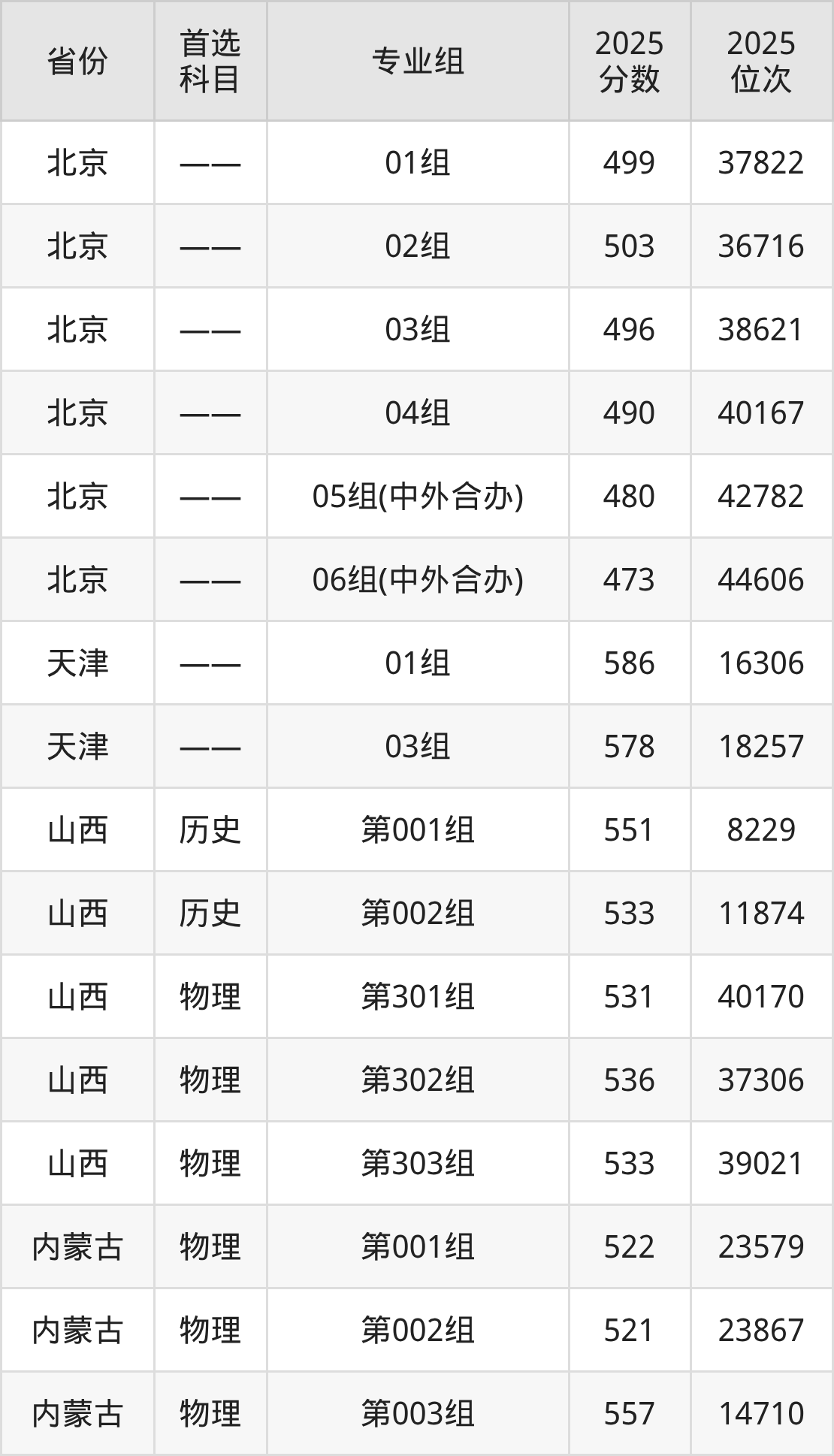 因为大部分地区目前只公布了院校(专业组)分数线,为了方便2026年考生参考,本文就整理出北京物资学院在全国各省不同科类的最低分: