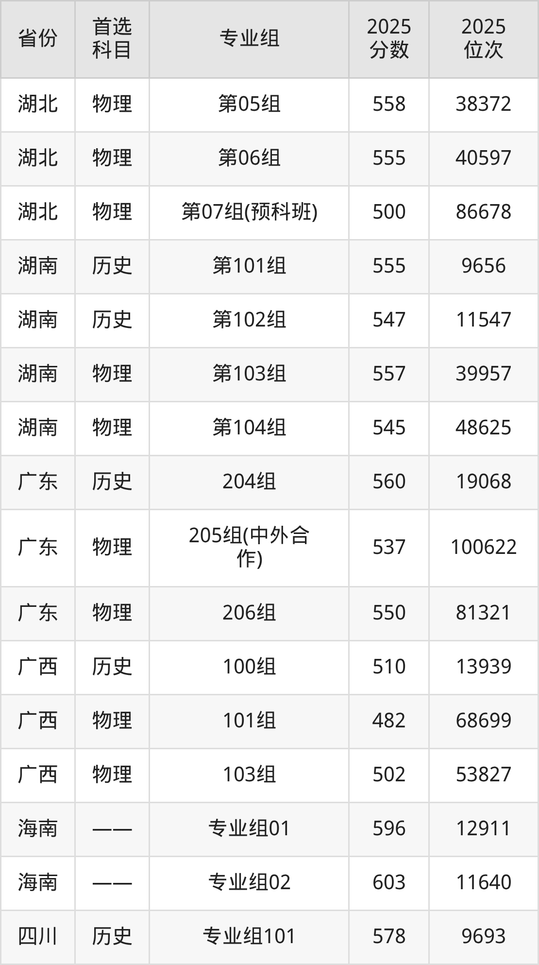 17.湖南:物理类545分、48625位,历史类547分、11547位