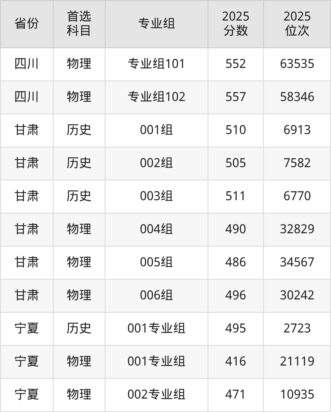 25.宁夏:历史类495分、2723位,物理类416分、21119位